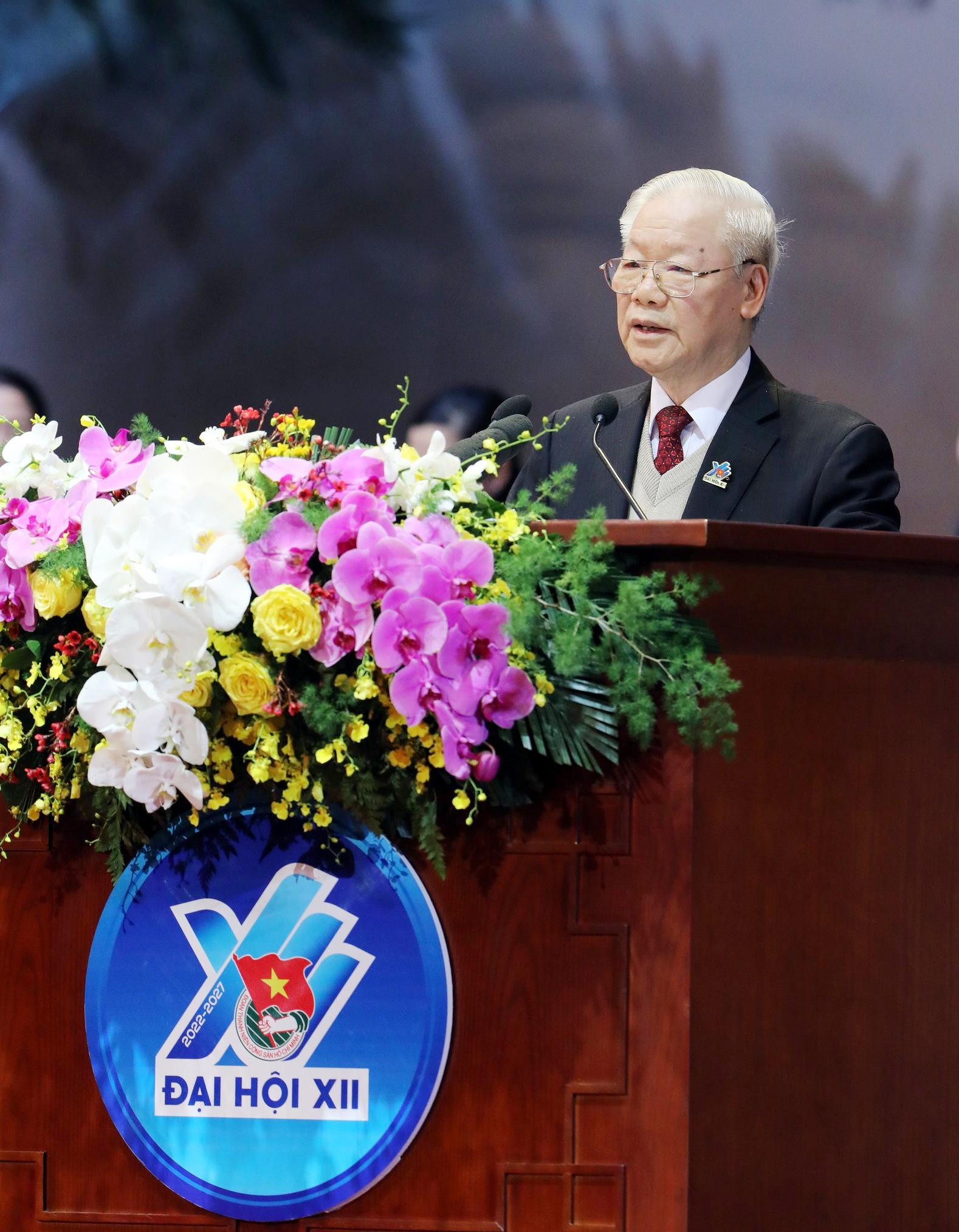 Sáng 15/12, phát biểu tại phiên trọng thể Đại hội đại biểu toàn quốc Đoàn TNCS Hồ Chí Minh lần thứ XII, nhiệm kỳ 2022 - 2027, Tổng Bí thư Nguyễn Phú Trọng nhấn mạnh, với trái tim đầy nhiệt huyết, với tinh thần sáng tạo, ham học hỏi và khát vọng cháy bỏng, thanh niên luôn là lực lượng đi đầu trong việc thực hiện các nhiệm vụ cách mạng.