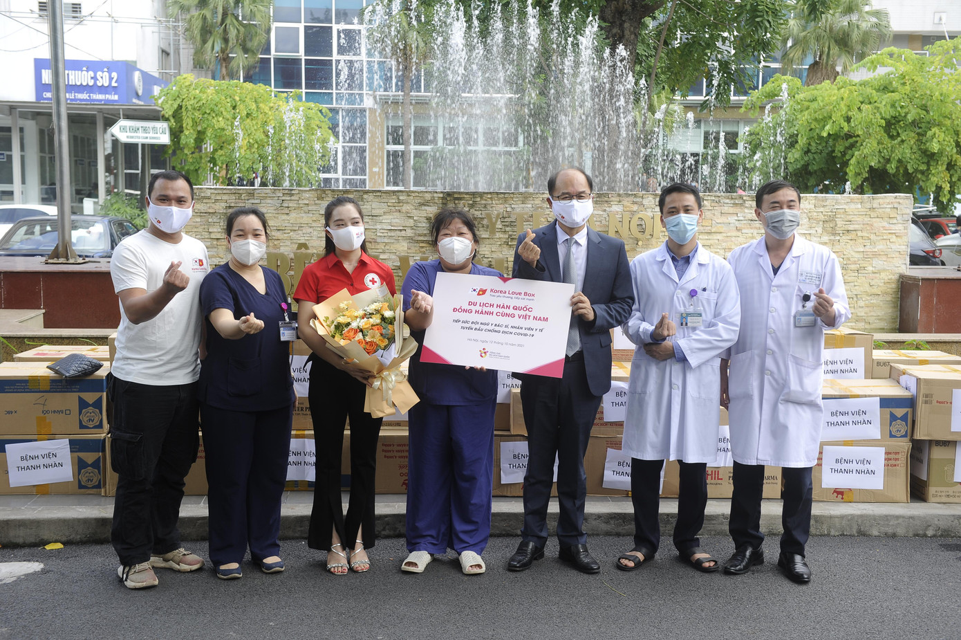 Tại Hà Nội, đoàn đại diện của KTO, Hội Chữ Thập Đỏ Việt Nam cùng với Quỹ Hy vọng tới thăm hỏi và trao tặng 500 phần quà tới các bác sỹ, cán bộ, nhân viên của Bệnh viện Đa khoa Đống Đa và Bệnh viện Thanh Nhàn.