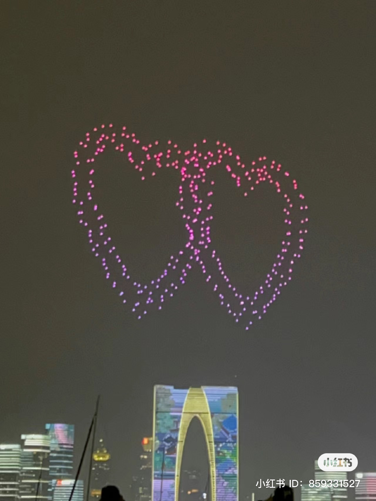 | Một số hình ảnh siêu dễ thương được thực hiện bởi 520 chiếc máy bay không người lái. Nguồn: Xiao Hong Shu |