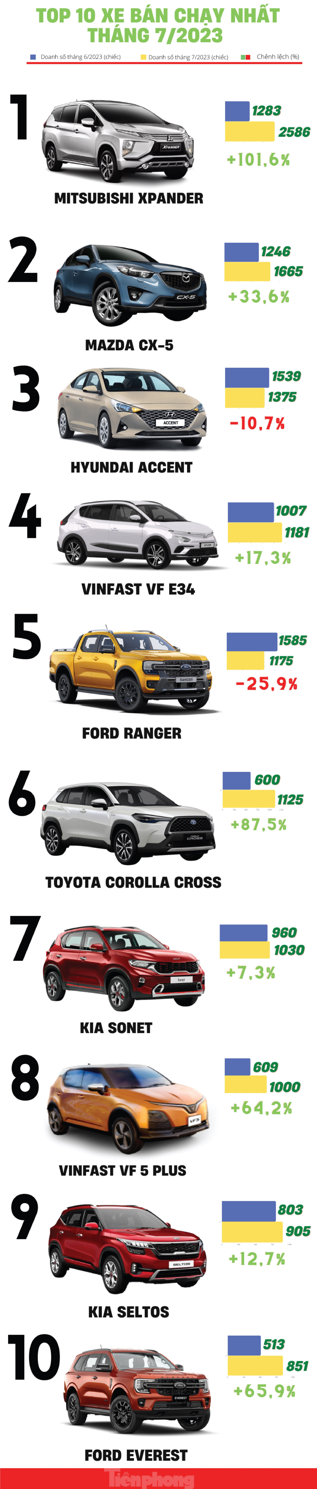 TPO - VinFast VF 5 bất ngờ lọt top 10 xe bán chạy nhất thị trường vào tháng 7. Đáng chú ý, hầu hết sản phẩm hút khách đang có đà tăng trưởng mạnh mẽ so với tháng 6.