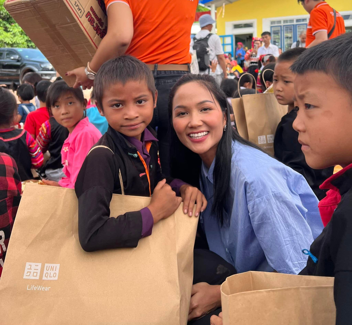 | H'Hen Niê thường xuyên chia sẻ hình ảnh trong các chuyến đi thiện nguyện. |