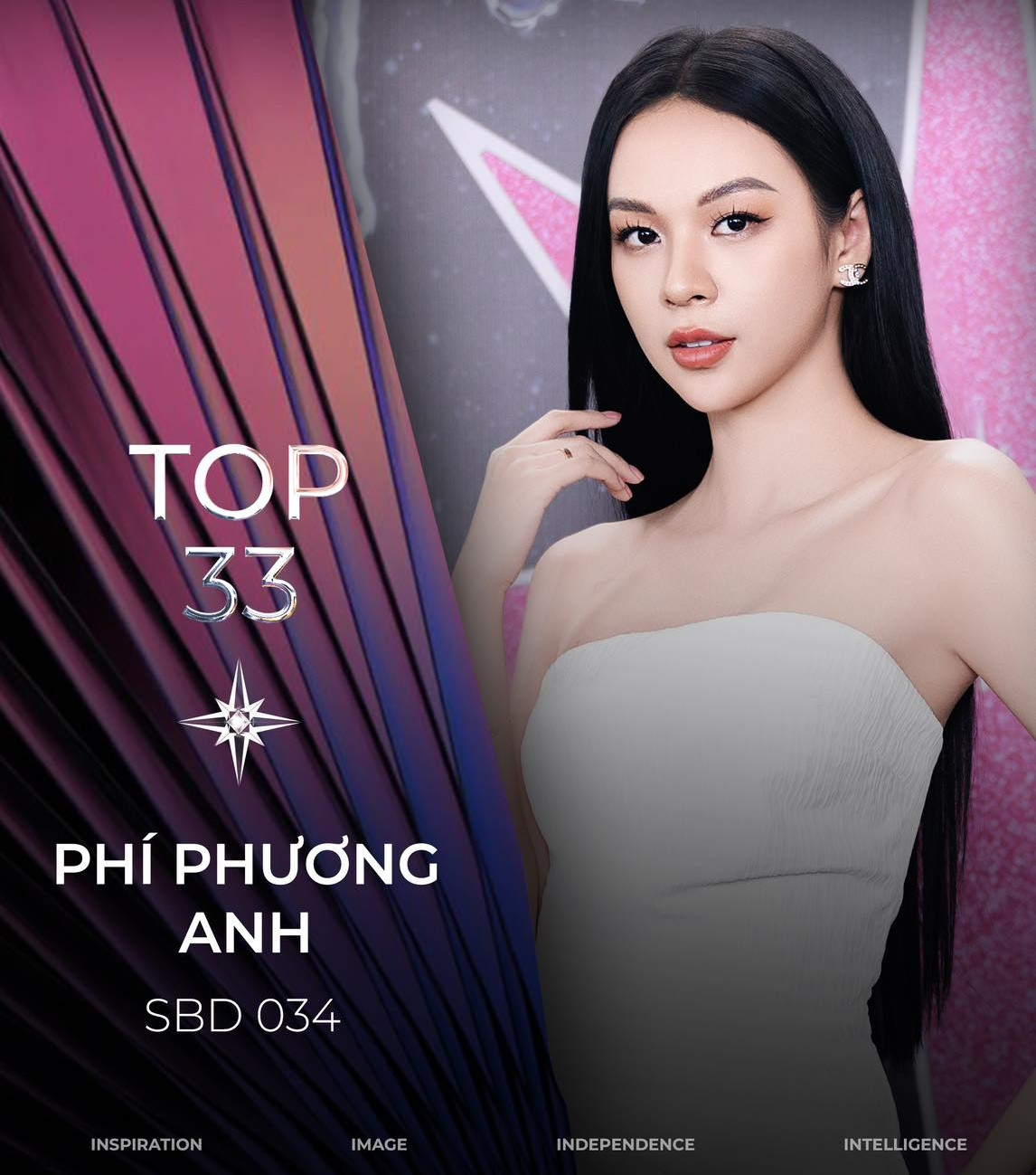 Phí Phương Anh - SBD 034: Phí Phương Anh từng khiến cộng đồng mạng tin chắc sẽ tham gia cuộc thi Miss Grand Vietnam 2024, nhưng cuối cùng lại ghi danh tại Miss Universe Vietnam 2024. Phí Phương Anh cao 1m74, từng giành Quán quân The Face Vietnam 2016.