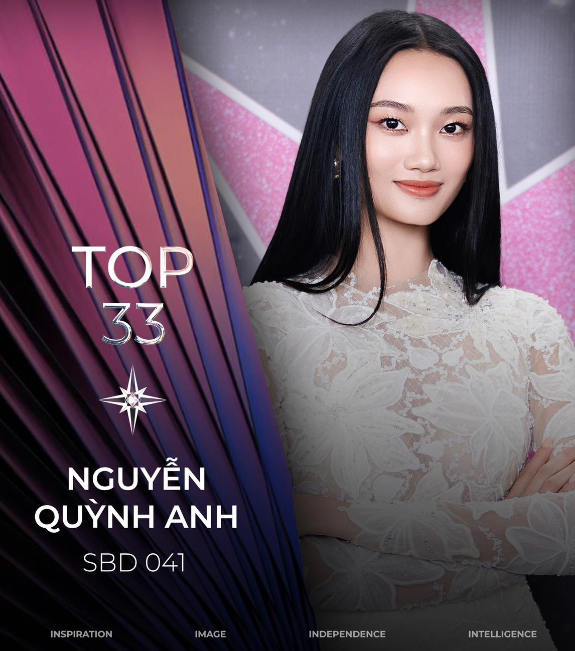 Nguyễn Quỳnh Anh - SBD 041: Người đẹp từng giành Á quân The Face Vietnam 2018, Quán quân Supermodel Me 2021. Ghi danh tại Miss Universe Vietnam 2024, Quỳnh Anh được đánh giá là rất hợp với phong cách của siêu mẫu nhưng lại không hợp với một cuộc thi hoa hậu.