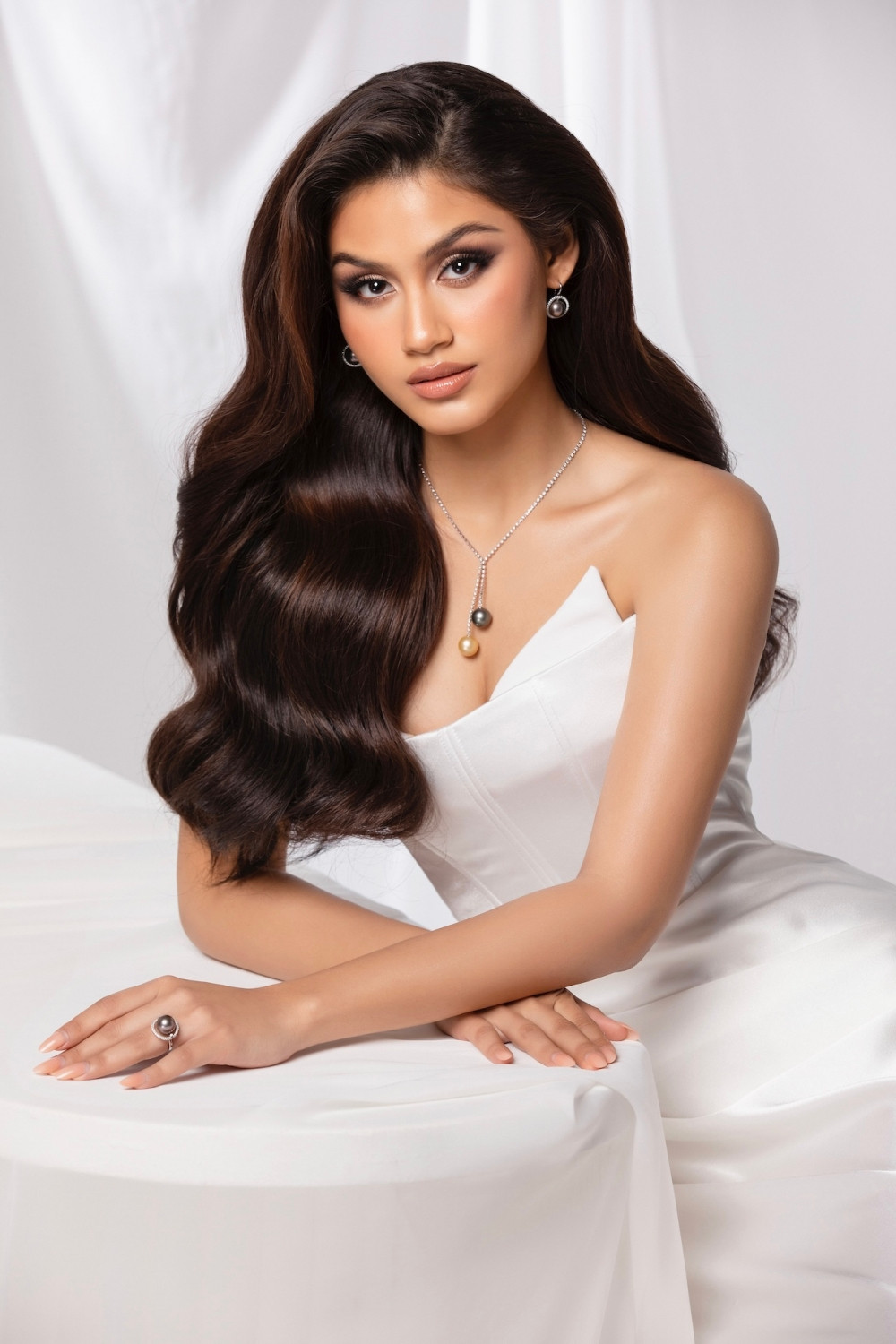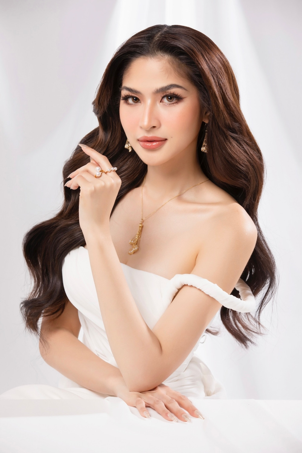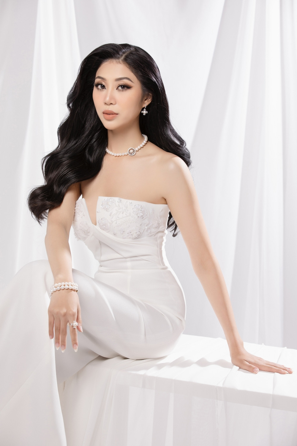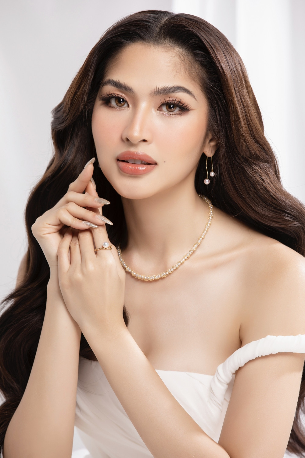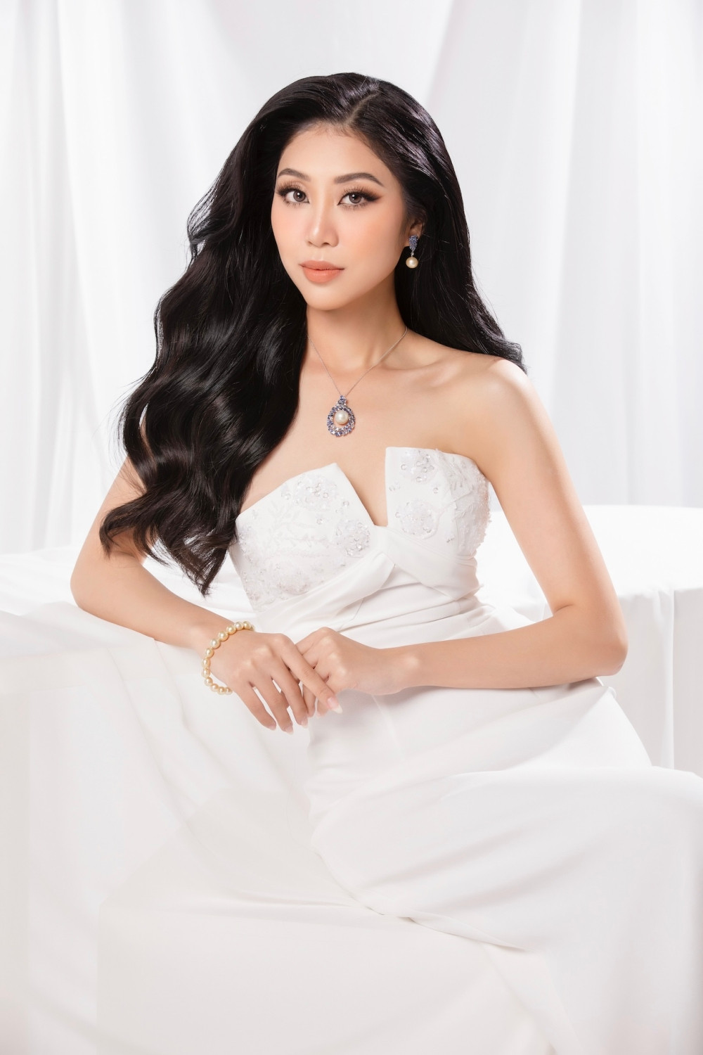 Trong bộ ảnh mang đậm chất beauty queen với những thiết kế dạ hội trắng tinh đến từ NTK Lê Thanh Hoà, Top 4 Miss Earth 2023 đẹp rạng ngời, nhan sắc có phần thăng hạng so với thời điểm đăng quang.