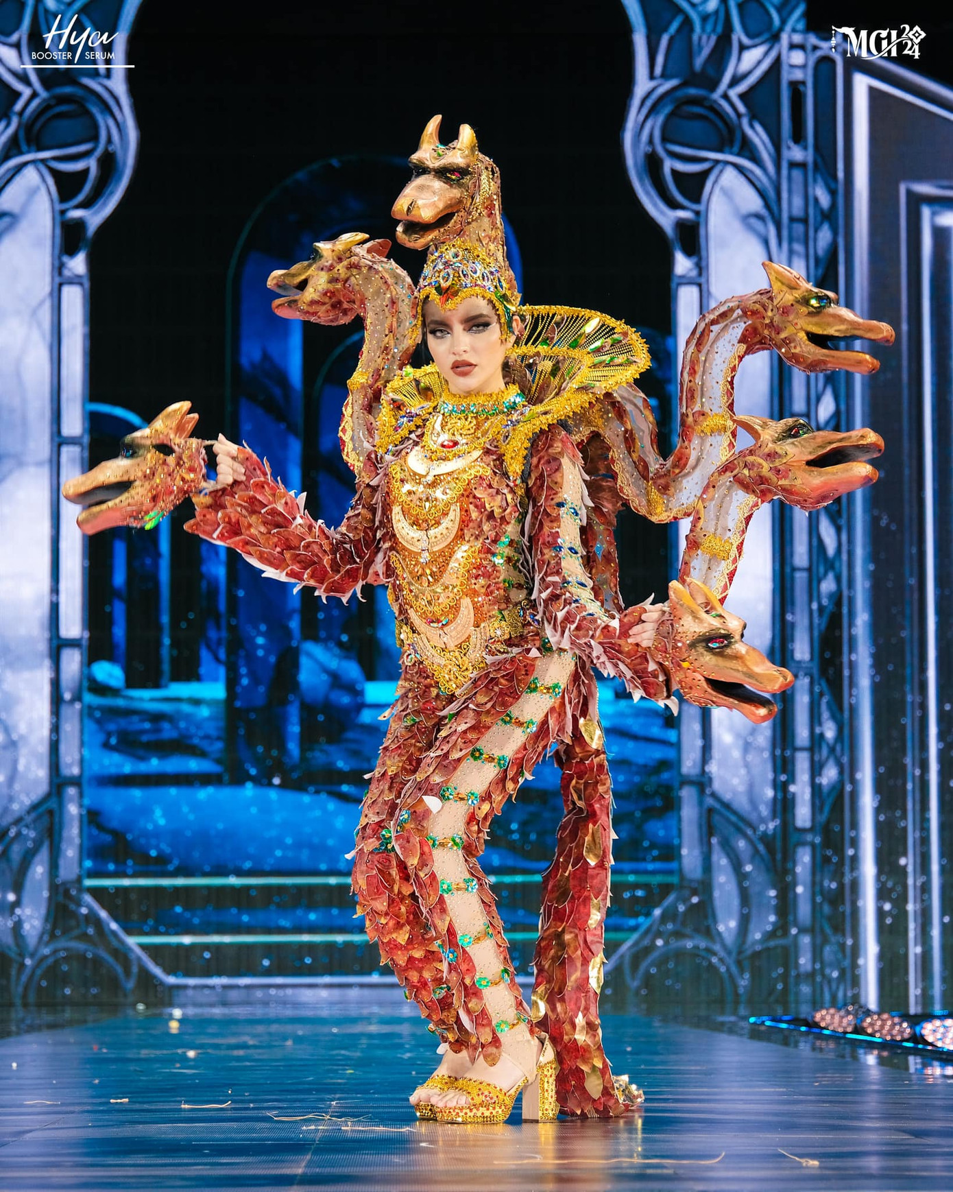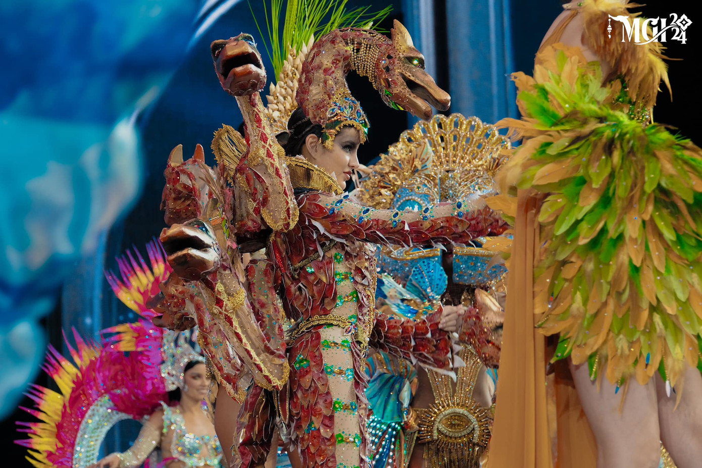 Các thí sinh đến từ Nam Mỹ luôn có trang phục dân tộc vô cùng bắt mắt, sặc sỡ đủ màu với nhiều chi tiết cầu kỳ và Miss Grand Paraguay cũng không phải ngoại lệ. Cô mặc trang phục lấy cảm hứng từ Teju Jagua, một sinh vật huyền thoại trong thần thoại Paraguay. Đó là một con rắn khổng lồ có 7 đầu và đôi mắt phát sáng trong bóng tối, tượng trưng cho sức mạnh của thiên nhiên.