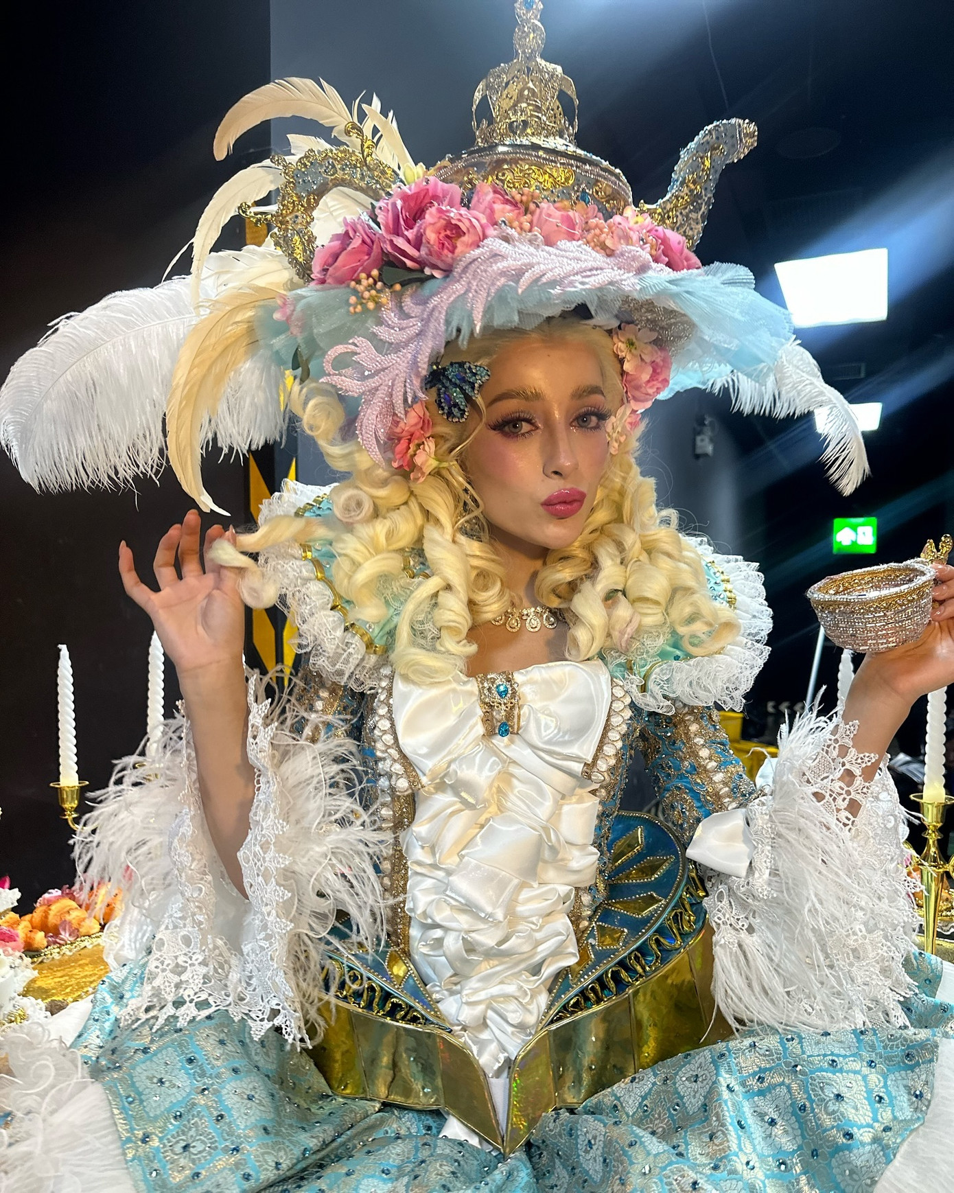Nhưng mọi người đều công nhận trang phục dân tộc mà đại diện nước Anh mang đến Miss Grand International 2024 xứng đáng đứng đầu bảng. Ngay từ khi Amy Viranya Berry bước ra sân khấu, cô đã khiến khán giả trầm trồ vì bộ váy bồng bềnh quá lộng lẫy và bắt mắt. Nhưng tâm điểm của thiết kế này lại là set tiệc trà vây xung quanh nàng hậu.