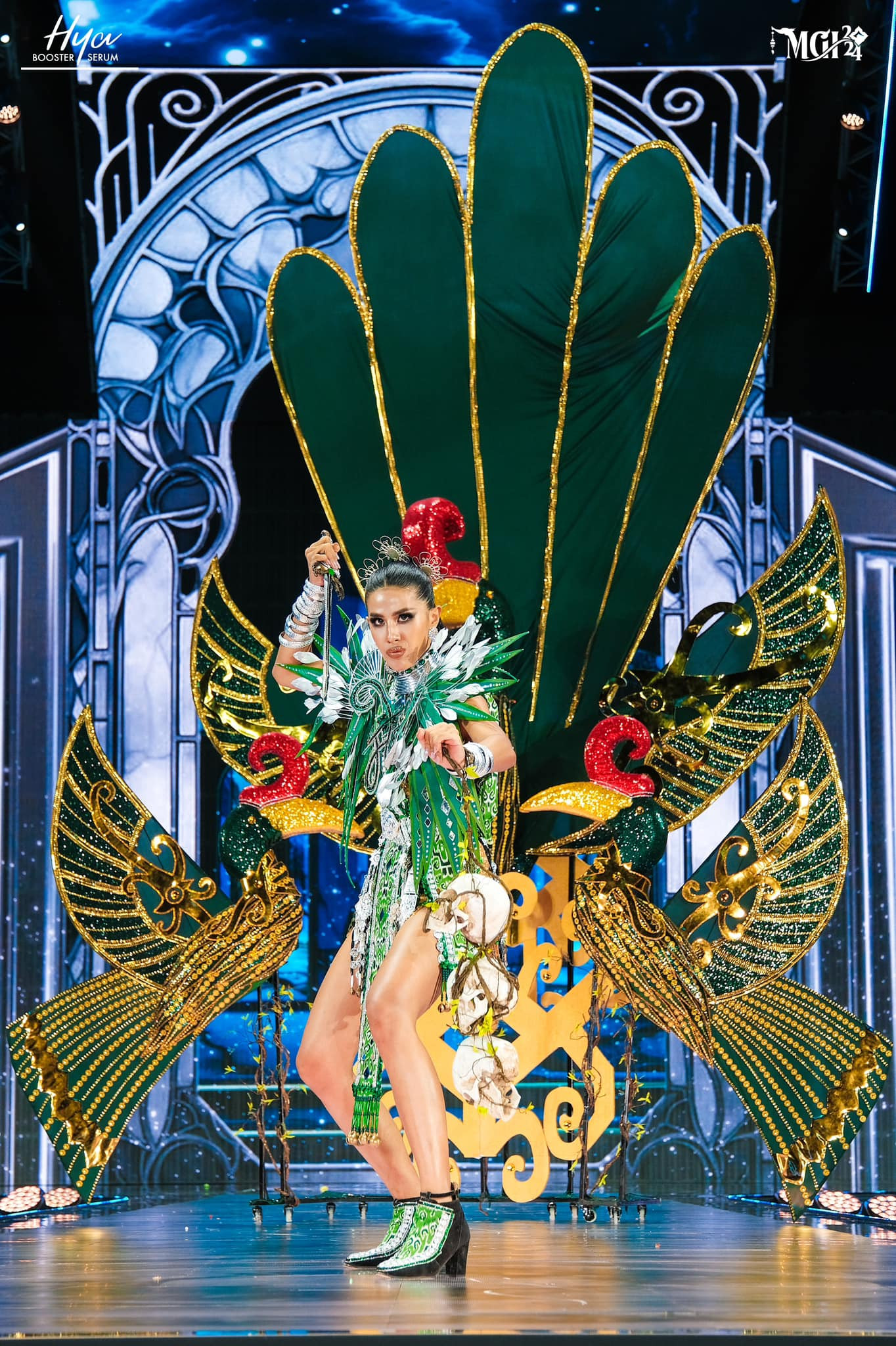 Đại diện Malaysia hóa thân thành loài chim Sengalang Burong, hay còn gọi là thần chiến tranh, thủ lĩnh các loài chim và người cai quản thế giới các linh hồn. Miss Grand Malaysia muốn thông qua phần thi trang phục dân tộc để giới thiệu truyền thuyết về nhân vật Sengalang Burong và lòng dũng cảm của người dân nước này đến với thế giới.
