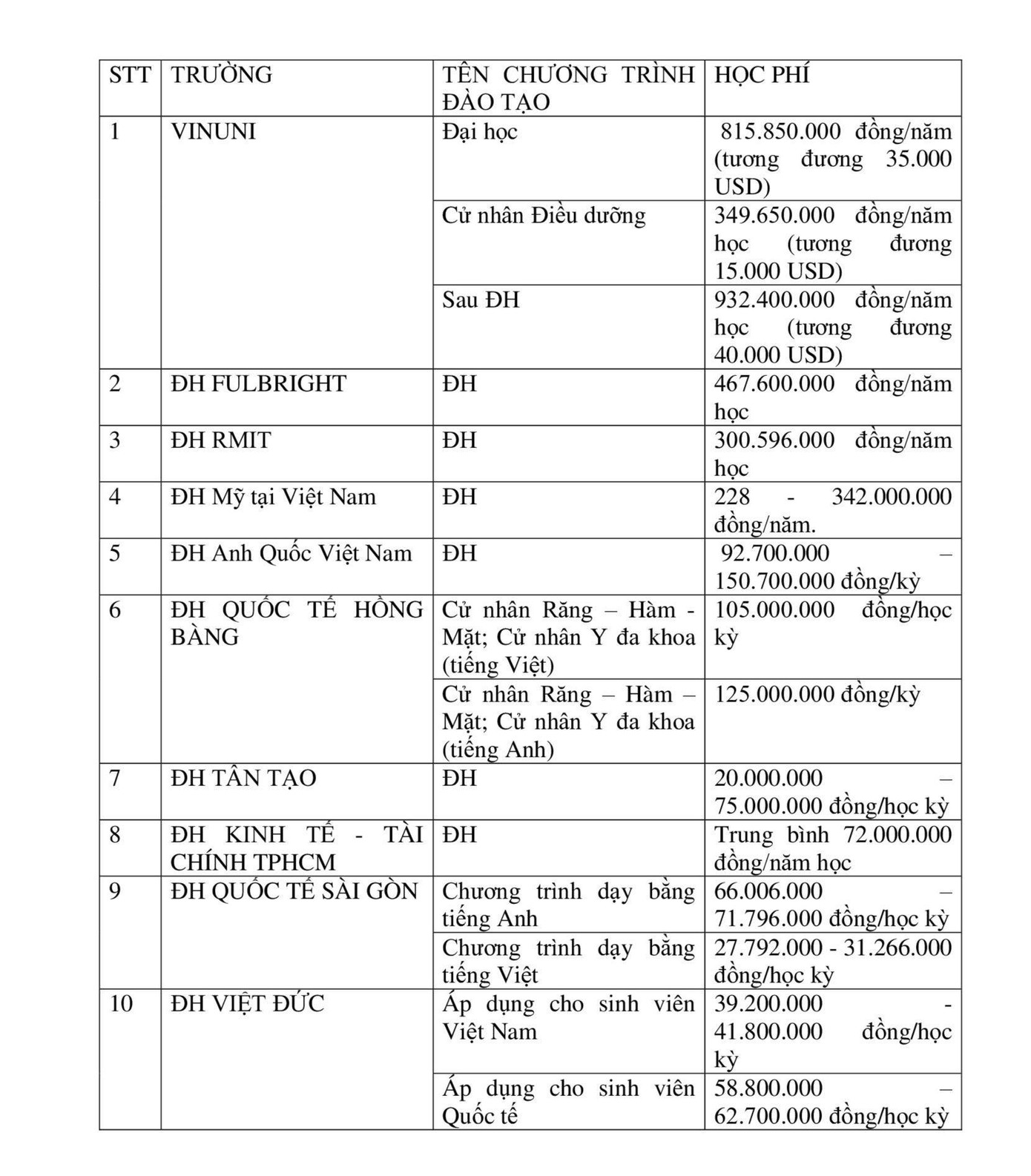 Cụ thể top các trường ĐH có học phí cao nhất tại Việt Nam như sau:
