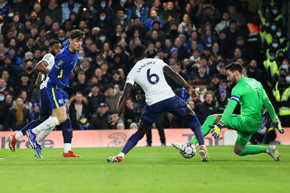 Phút thứ 5, Tanganga của Tottenham có đường chuyền bất cẩn và để Marcos Alonso lấy được bóng. Cầu thủ người Tây Ban Nha kiến tạo cho Havertz đi bóng và dứt điểm mở tỷ số cho Chelsea. Hậu vệ Davinson Sanchez đã cố gắng tranh chấp với Havertz nhưng không thành công. Đội chủ nhà chơi áp đảo nhưng những bàn thắng lại đến từ sai lầm chết người của hàng thủ Tottenham.