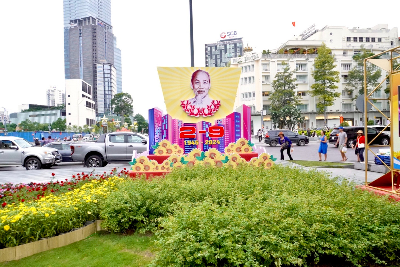 | Phố đi bộ Nguyễn Huệ (Q. 1) rực rỡ sắc hoa cùng hình ảnh Chủ tịch Hồ Chí Minh trong dịp mừng 79 năm Quốc khánh nước Cộng hoà Xã hội chủ nghĩa Việt Nam. |