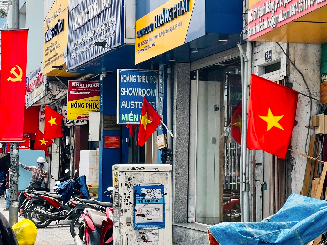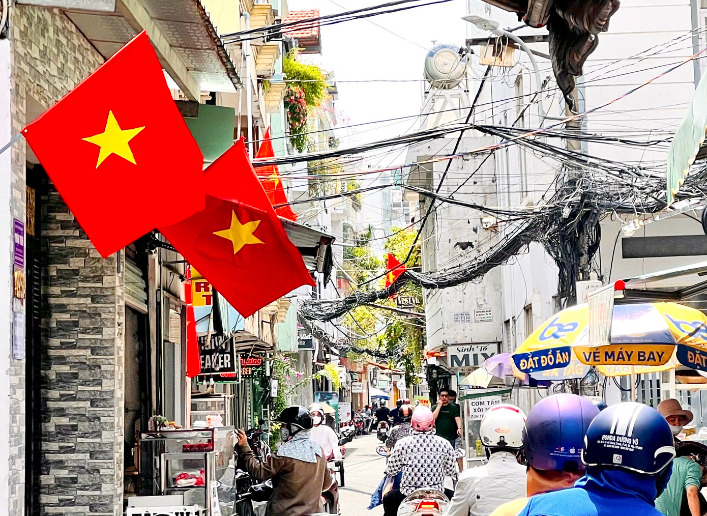 | Các hộ dân sinh sống tại đường Xô Viết Nghệ Tĩnh và đường Bạch Đằng (Q. Bình Thạnh) treo cờ Tổ quốc đón Lễ Quốc khánh cùng cả nước. |