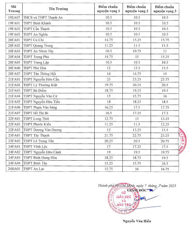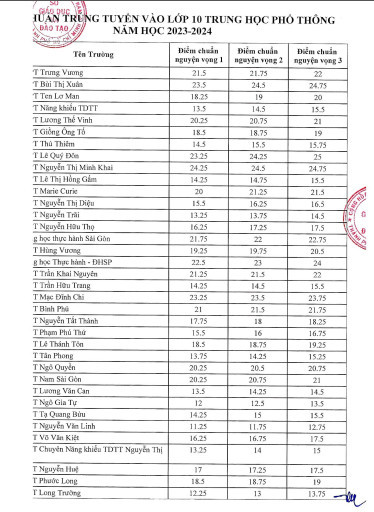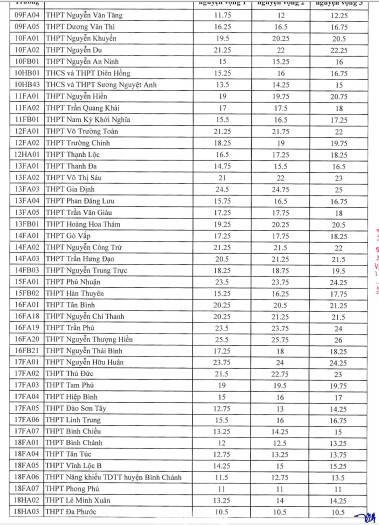 Dưới đây là điểm chuẩn 114 trường công lập tại TPHCM năm học 2023- 2024.