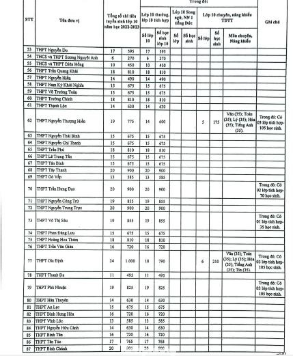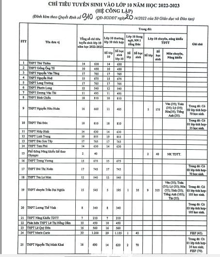 Chỉ tiêu cụ thể vào 114 trường THPT công lập như sau: