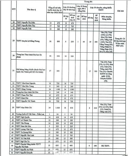 | TPHCM công bố chỉ tiêu tuyển sinh vào lớp 10 năm học 2022- 2023 |