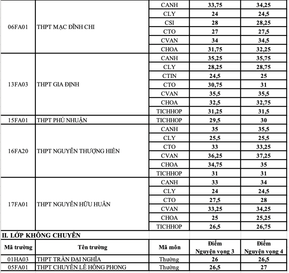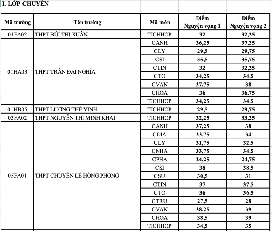 Dưới đây là điểm trúng tuyển lớp 10 chuyên của TPHCM năm học 2022- 2023: