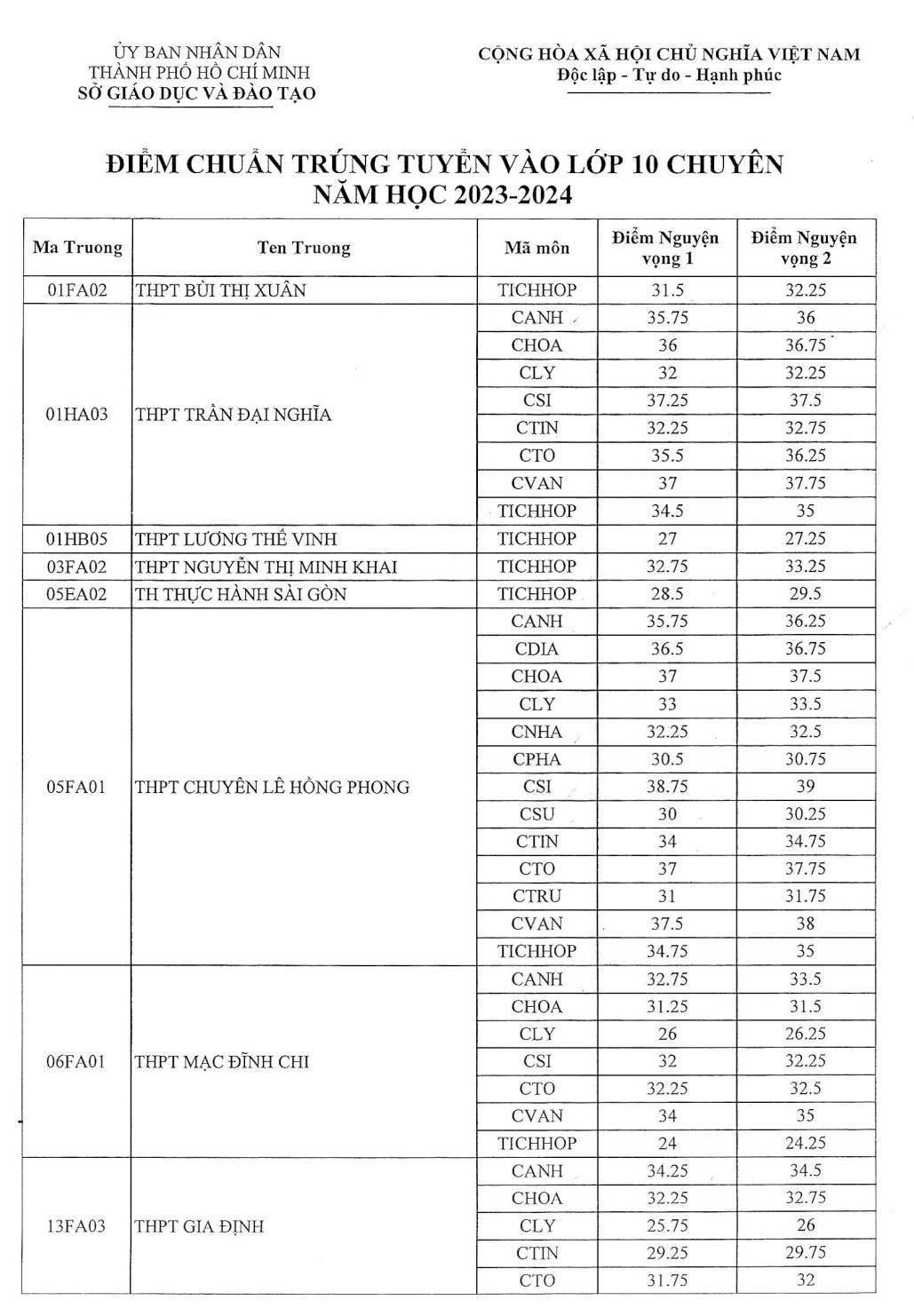 | Điểm chuẩn lớp 10 chuyên và tích hợp tại TP.HCM năm học 2023 - 2024. |