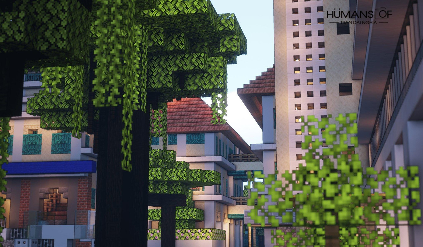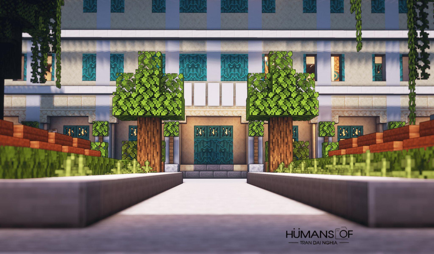 Không gian trường THPT chuyên Trần Đại Nghĩa được tái hiện trong game Minecraft (Nguồn: FB Phuoc Cuber)