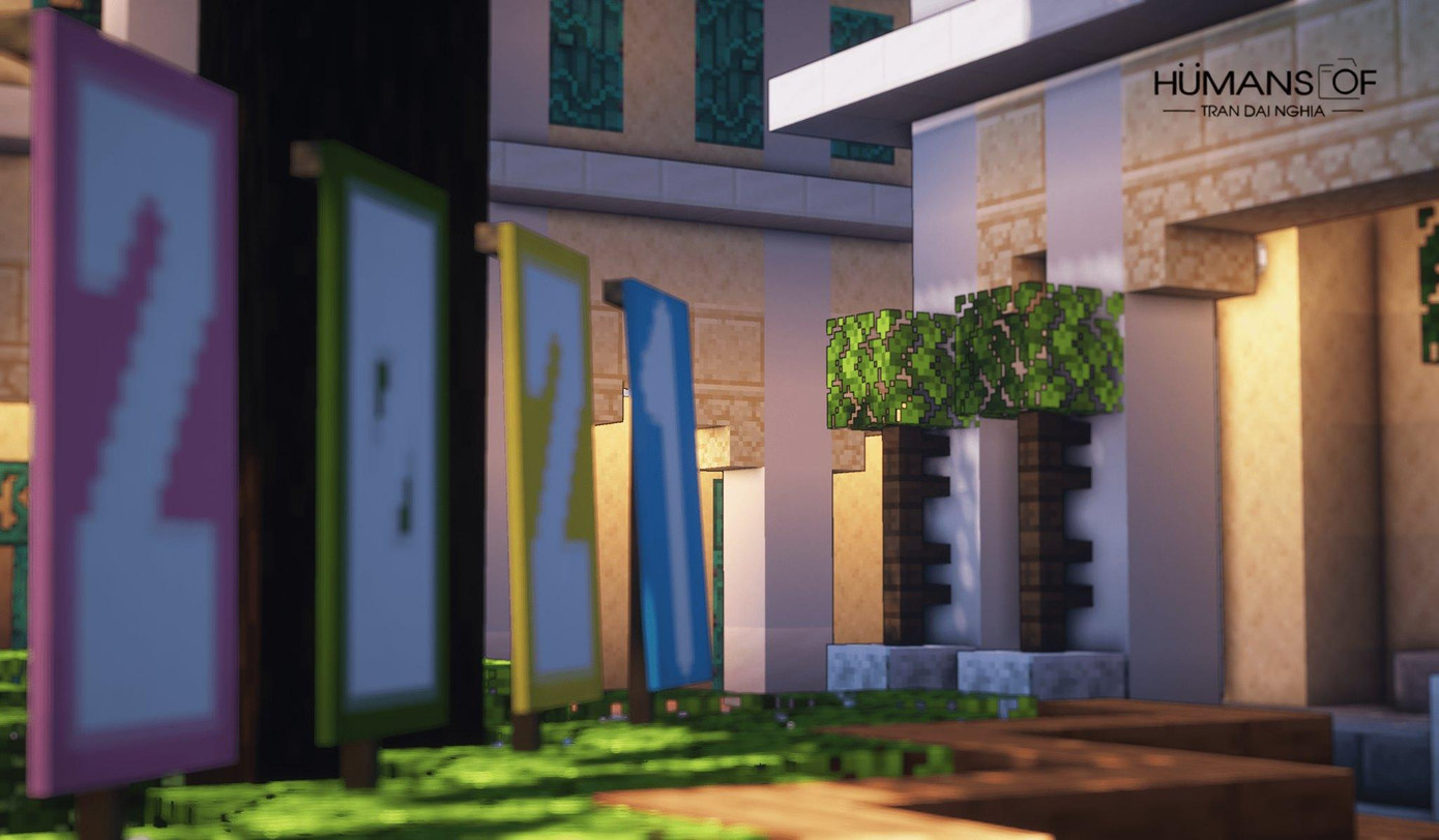 | Dãy hành lang đầy kỉ niệm đối với nhiều thế hệ học sinh Trần Chuyên cũng được tái hiện trong Minecraft - Ảnh: Humans of TĐN |
