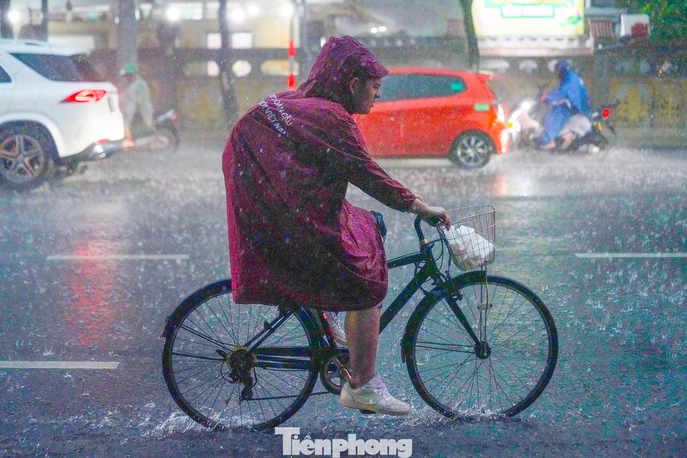 | Một người trú mưa hơn 30 phút vẫn chưa thể di chuyển. |