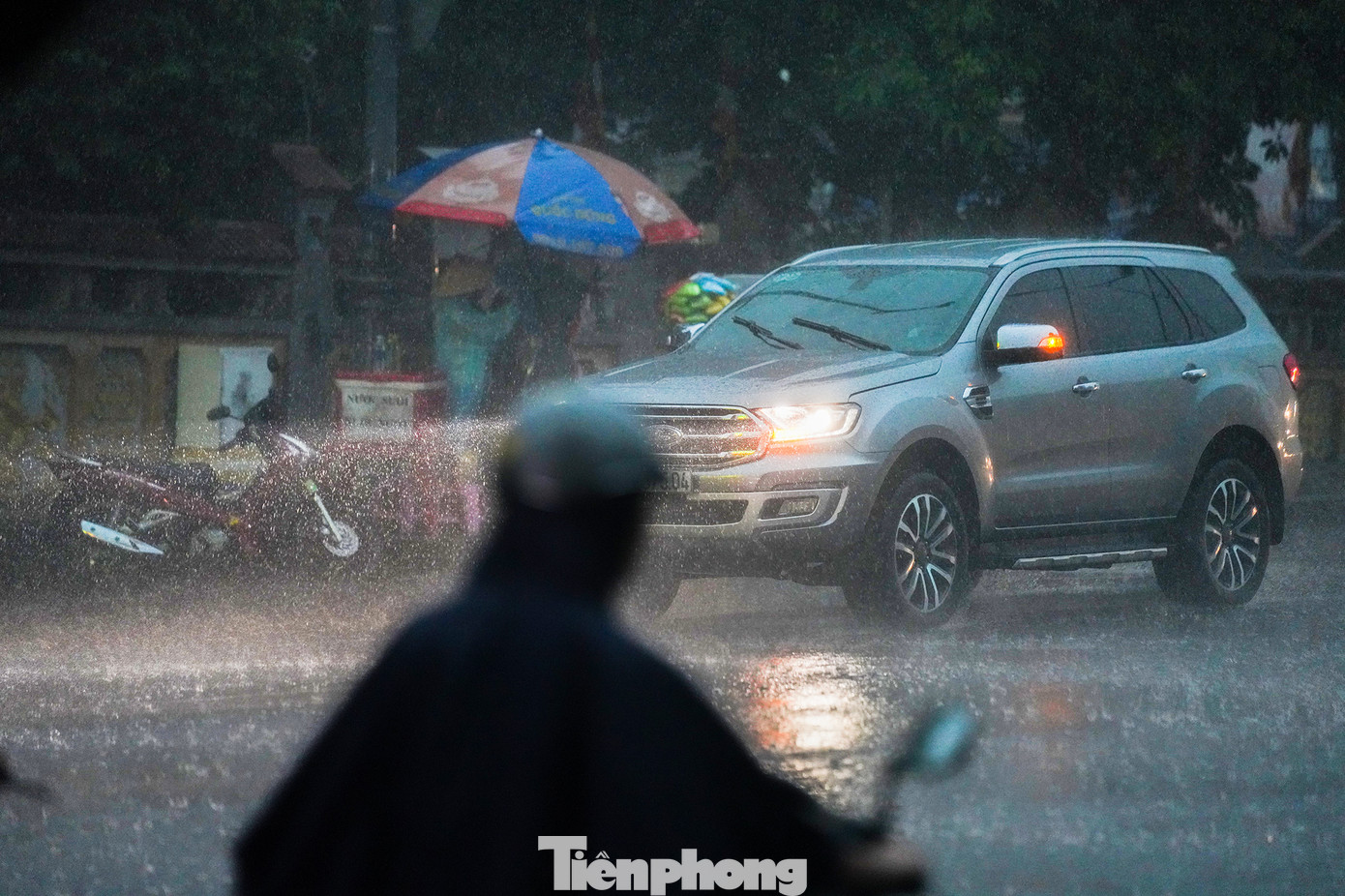 | Đến hơn 17h, cơn mưa vẫn chưa ngớt hạt. |