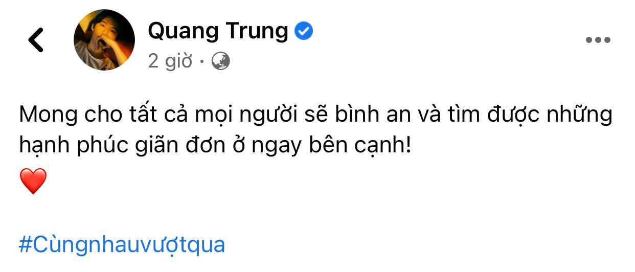 | Nhiều nghệ sĩ Việt đã gửi những lời nhắn nhủ, động viên mọi người. |