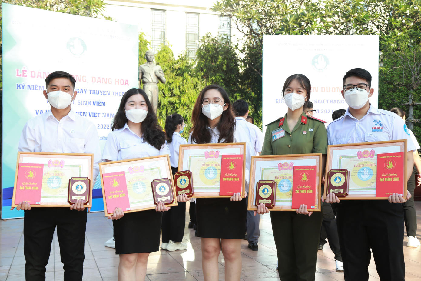 Tại chương trình, Hội SVVN TPHCM đã tuyên dương, trao giải thưởng "Sao tháng Giêng" của Trung ương Hội cho 14 bạn cán bộ Hội tiêu biểu trong học tập và rèn luyện tại các trường Đại học - Cao đẳng - Học viện trên địa bàn thành phố.