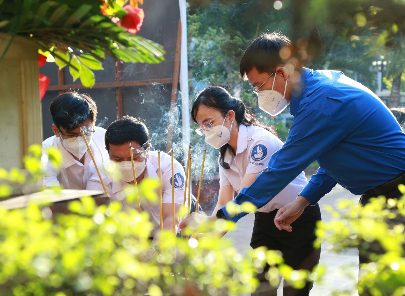 | Các cán bộ Hội, hội viên, sinh viên dâng hoa tri ân anh Trần Văn Ơn, người anh hùng trẻ tuổi đã ngã xuống vì nền độc lập, hòa bình của đất nước. |