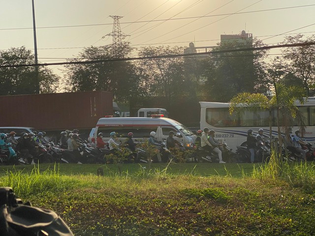 Giao thông tắc nghẽn từ khoảng 7 giờ. Nhiều xe máy do chờ quá lâu phải di chuyển lên vỉa hè hoặc thảm cỏ được trồng giữa đường Võ Nguyên Giáp và song hành. Nhiều thời điểm đoạn đường như đường một chiều do dòng xe chen lấn.