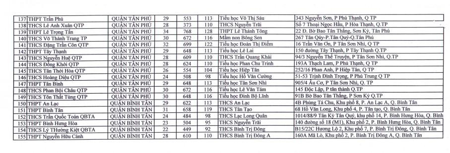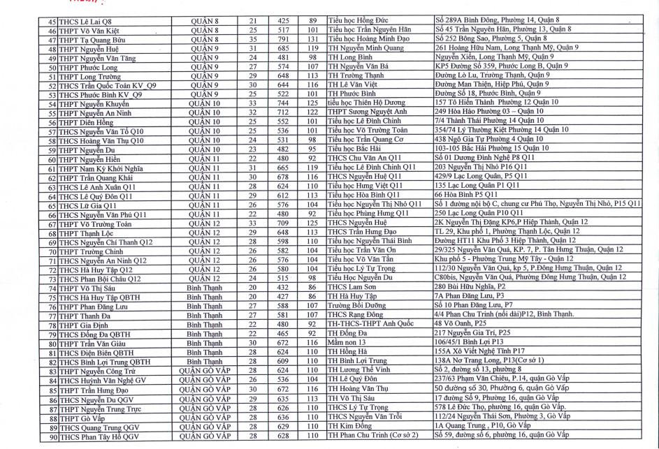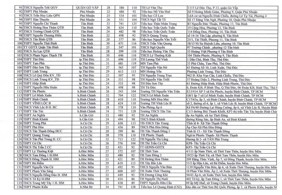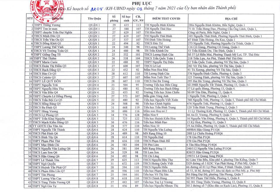 Danh sách 155 điểm thi tổ chức lấy mẫu xét nghiệm COVID-19 phục vụ kỳ thi tốt nghiệp THPT tại TPHCM: