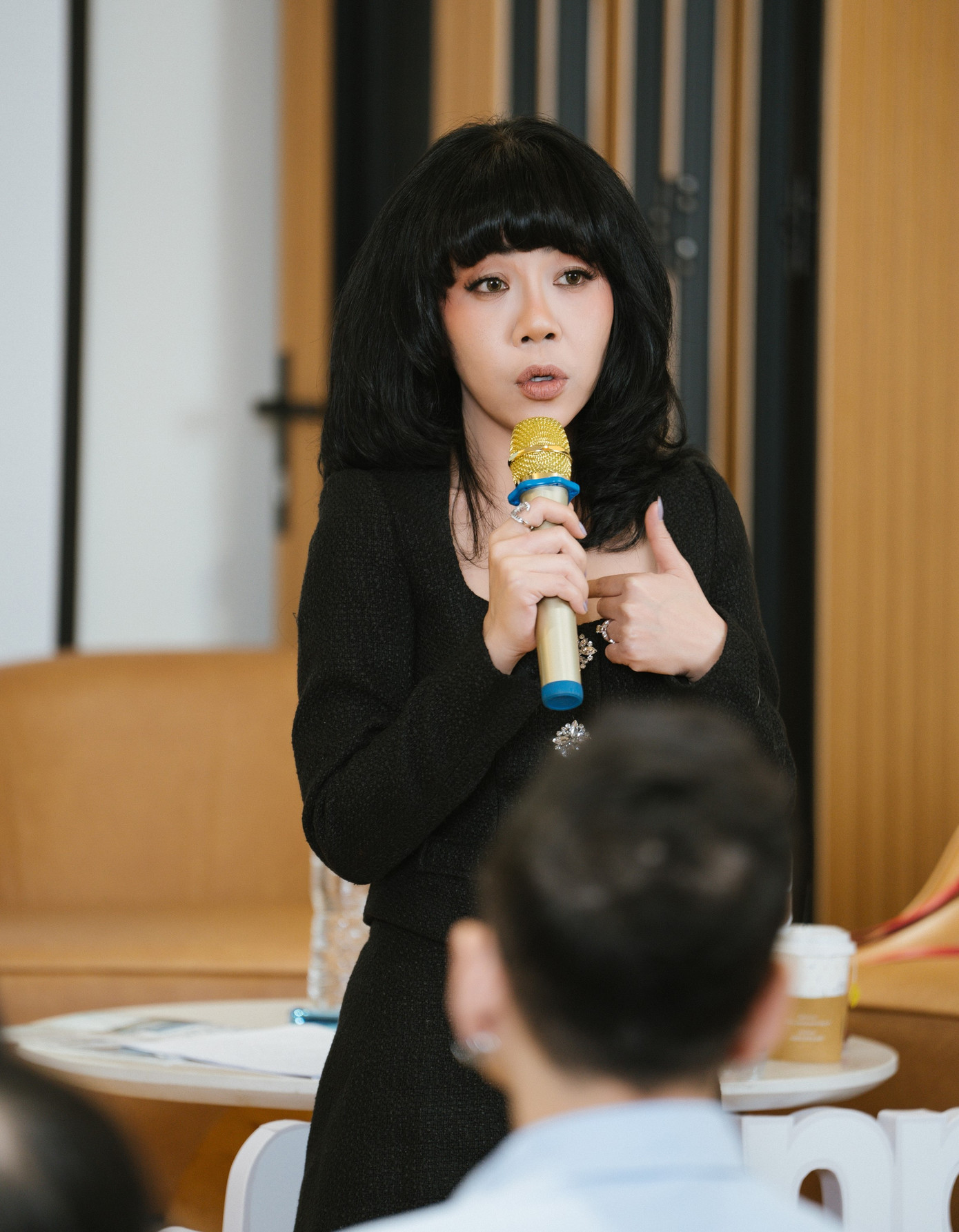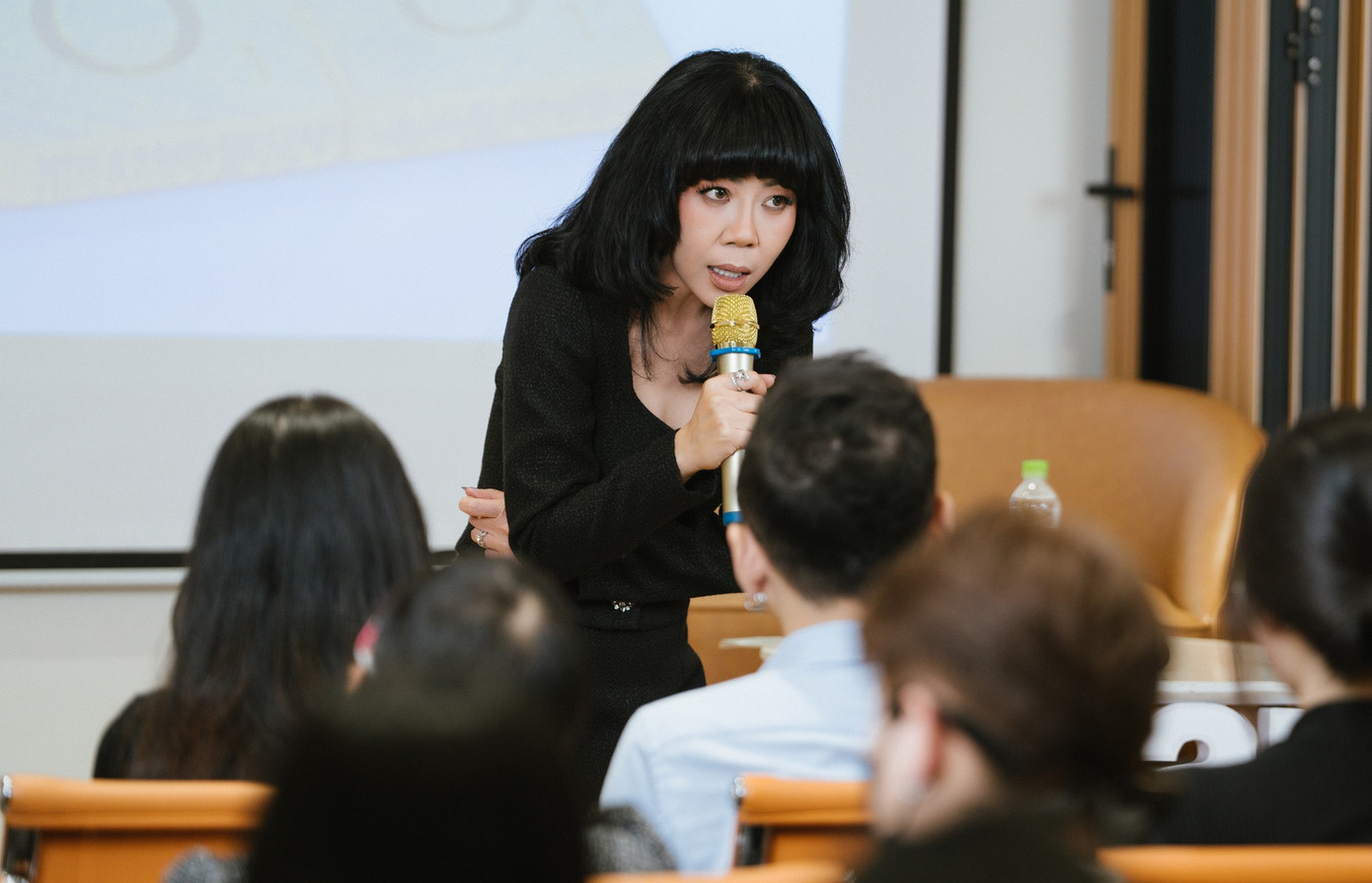Cô nói thêm: “Đôi khi, nhìn ngược vấn đề, tôi thấy điều người khác không thấy. Bạn cũng có thể nhìn chính mình và thế giới từ một chiều, một góc độ khác, và cuộc chơi kiến tạo nhân hiệu sẽ thú vị hơn. Ít nhất, bạn sẽ có cái đáng coi hơn. Sự băn khoăn ‘tôi không thú vị’ có thể là câu hỏi tu từ bổ ích nhất cho hành trình kiến tạo hoặc cải thiện nhân hiệu. Chúng ta gặp nhau không để nói về thực tế ảo, mà ta sẽ nói với nhau về cách xây dựng một thực tế mới cho tới khi nó không còn mới nữa, ta vẫn có thể xây thêm một thực tế khác”.