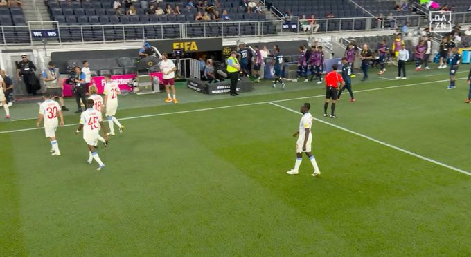Ở thời điểm tạm dừng, cuộc đối đầu giữa Pachuca và Salzburg tại sân TQL đang có tỷ số 1-0 nghiêng về đại diện của UEFA. Salzburg vươn lên dẫn bàn trong hiệp 1 nhờ cú cứa lòng đẳng cấp Gloukh vào phút 42. Nhận bóng từ đồng đội, cầu thủ này ngoặt bóng loại bỏ đối phương trước khi găm bóng vào góc thấp ghi bàn.