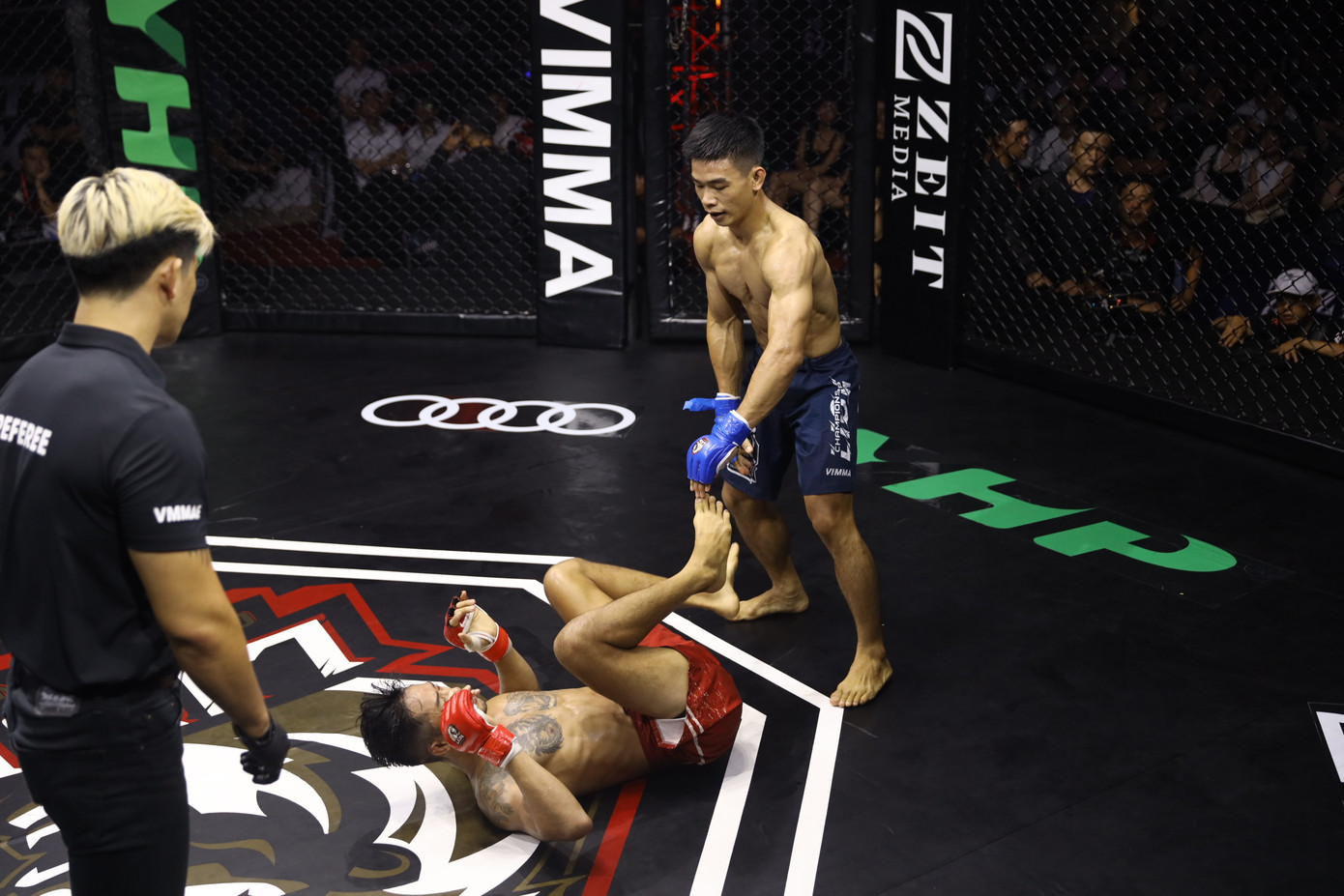 Lượt thi đấu tối còn chứng kiến cú knockout ấn tượng của tay đấm Đỗ Phúc Hậu (MMA Fight Academy) ở hạng cân 60kg. Sau những phút quần thảo cùng đối thủ Nguyễn Huy Sắc (California Fitness & Yoga Center) ở hiệp 1, Phúc Hậu chuyển sang các đòn đánh đứng với một pha đấm thẳng tay phải chuẩn xác, đánh gục Huy Sắc xuống mặt sàn trước khi tung tổ hợp đòn kết thúc trận đấu.