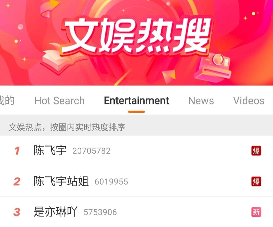 Ngay sau khi loạt ảnh nhạy cảm của Trần Phi Vũ bị lan truyền, từ khóa liên quan đến anh đã leo hạng 1 và 2 trên bảng Hot Search mục Giải trí của Weibo cùng lượt truy cập khủng.