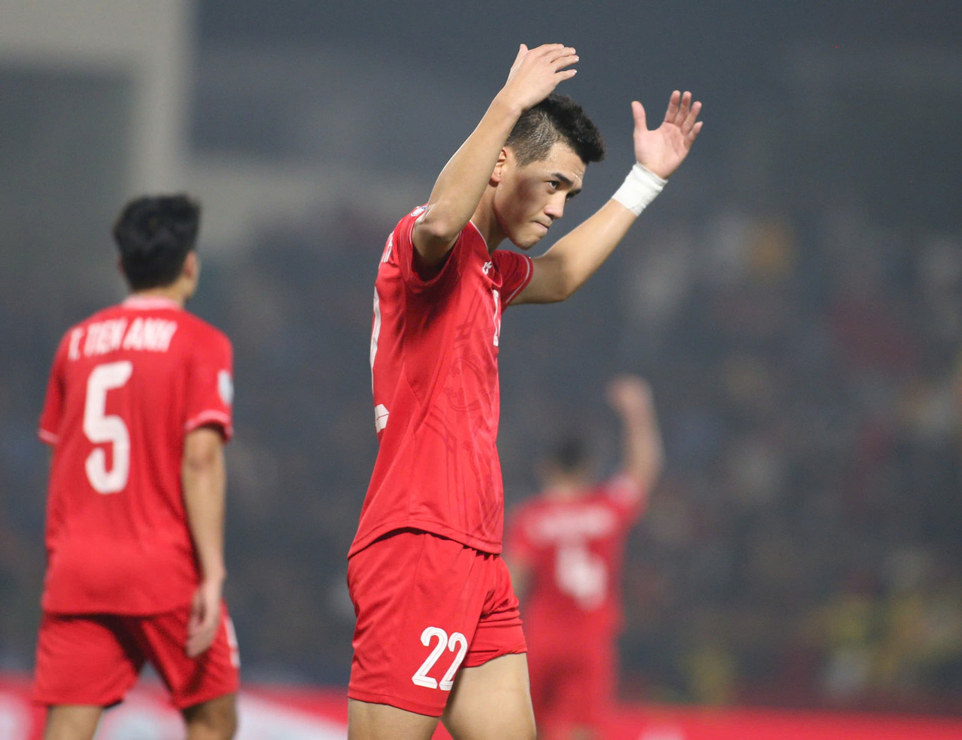 | Minh Tuấn ăn mừng bàn thắng gỡ hòa chung cuộc cho Việt Nam tại bán kết AFF Cup 2016 |