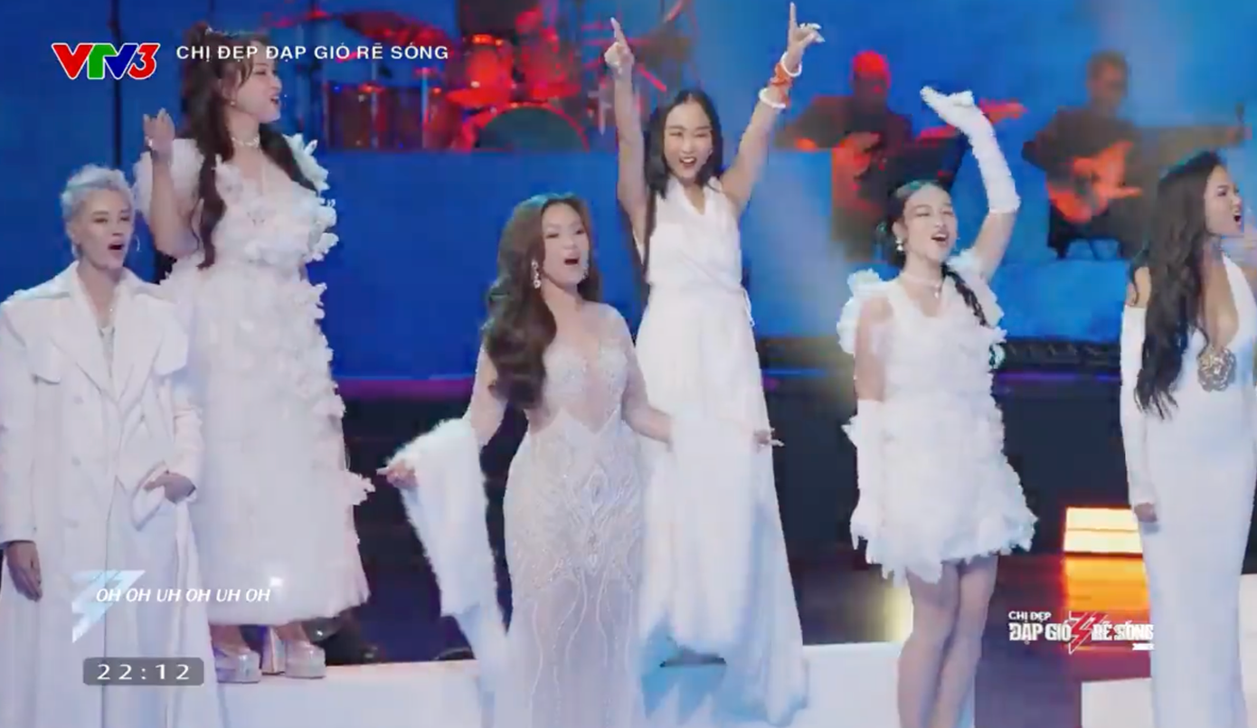 Đội Trang Pháp biểu diễn đầu sân khấu mash up Nam quốc sơn hà và Đất nước trọn lời ru. Khán giả được chứng kiến chị đại Mỹ Linh, Thu Phương rap.