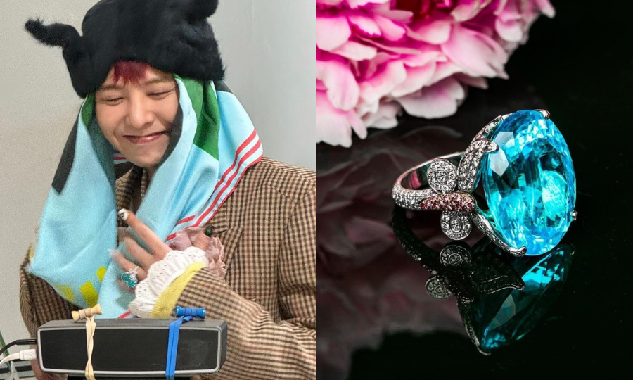 Chiếc nhẫn hút mắt trên tay G-Dragon khiến khán giả phải "ngã ngửa" khi biết danh tính. Món trang sức đến từ Jacob&Co., làm bằng đá Tourmaline màu xanh lục tự nhiên 44,87 carat, kim cương và vàng, ước tính có giá 6,4 triệu USD (gần 162 tỷ đồng).