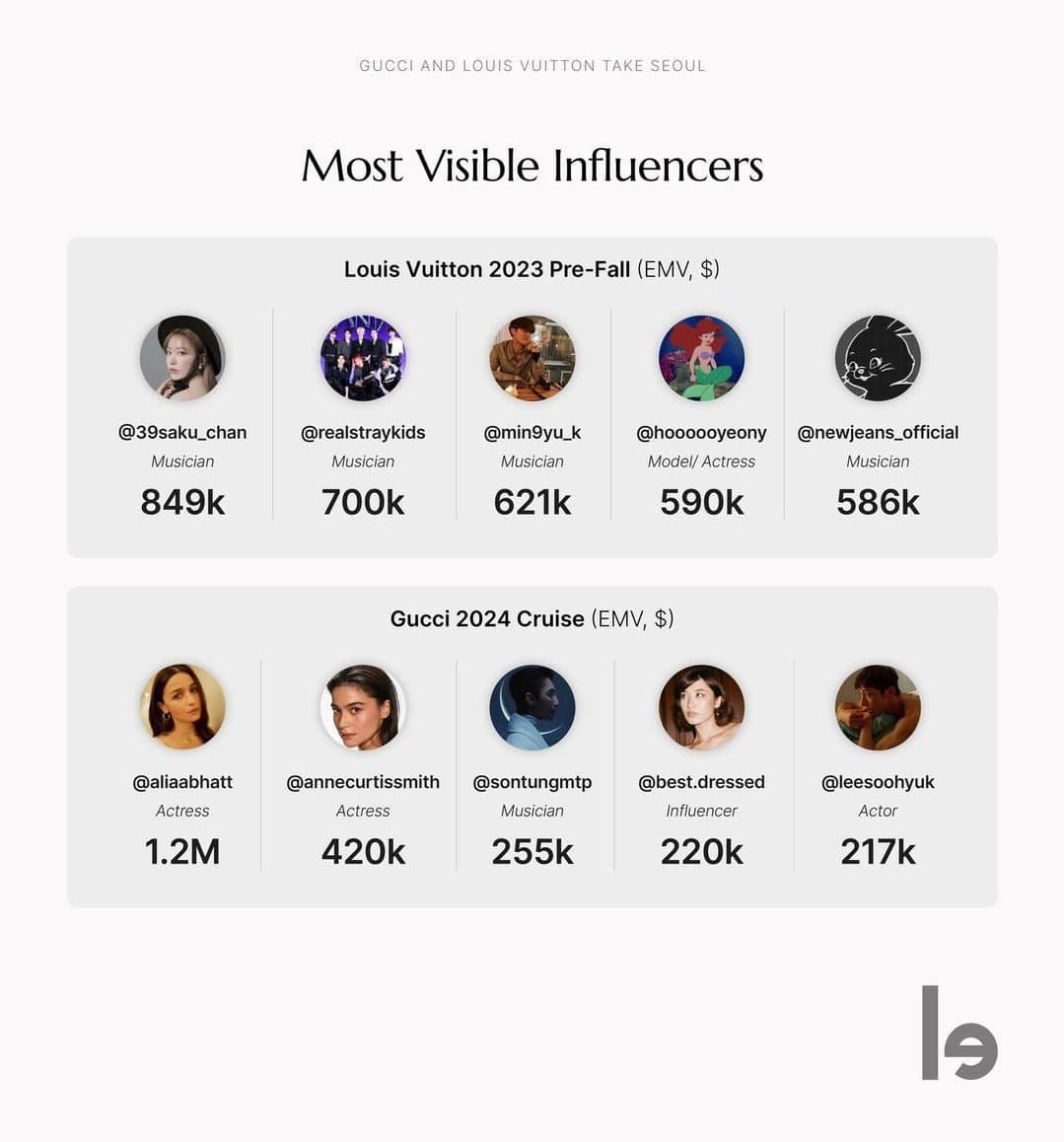Theo công bố từ tạp chí WWD, là KOL cho thương hiệu nhưng Sakura lại nằm trong Top 5 người nổi tiếng có sức ảnh hưởng nhất tại show diễn Louis Vuitton 2023 Fall-Winter (Paris Fashion Week). Cô cũng là người mang về giá trị truyền thông (EMV) cao nhất cho hãng tại Louis Vuitton 2023 Pre-Fall (Seoul show).