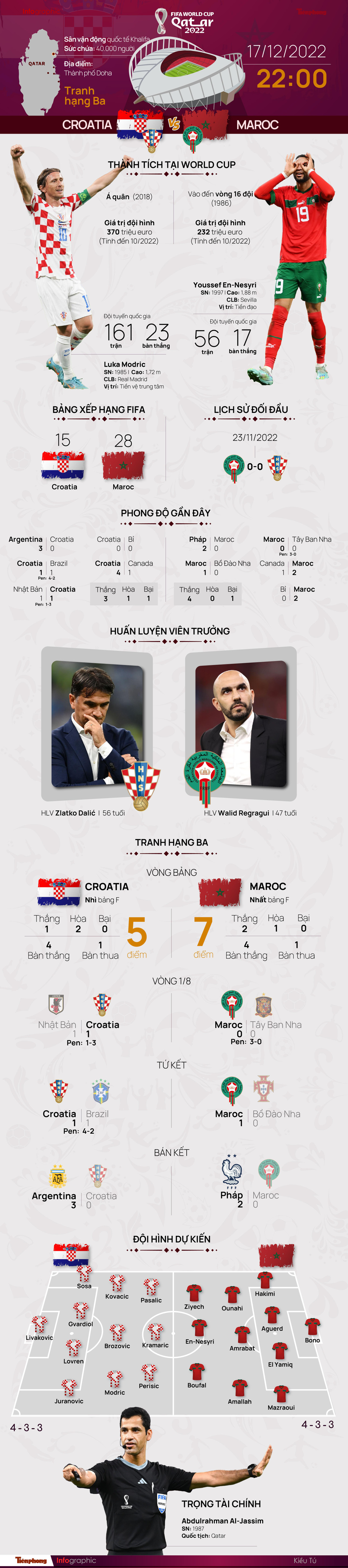 Google News Tranh hạng Ba World Cup 2022: Tương quan trước trận Croatia - Morocco, 22 giờ 17/12