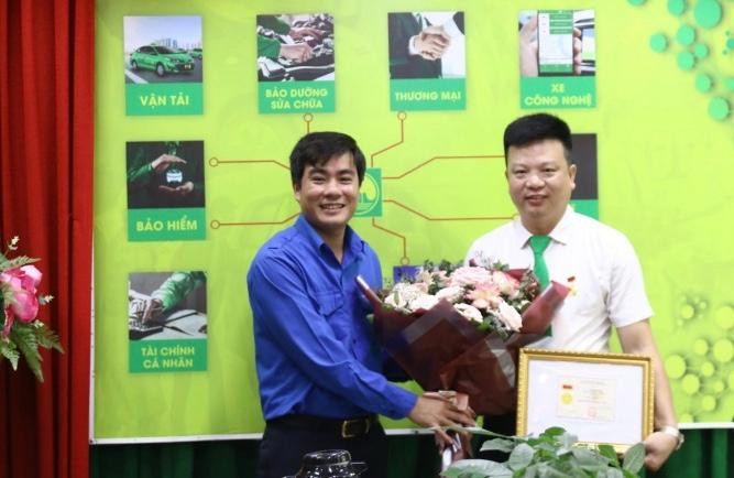 Bí thư Tỉnh Đoàn Thanh Hoá trao Huy hiệu Tuổi trẻ dũng cảm và chúc mừng Lê Huy Sinh.