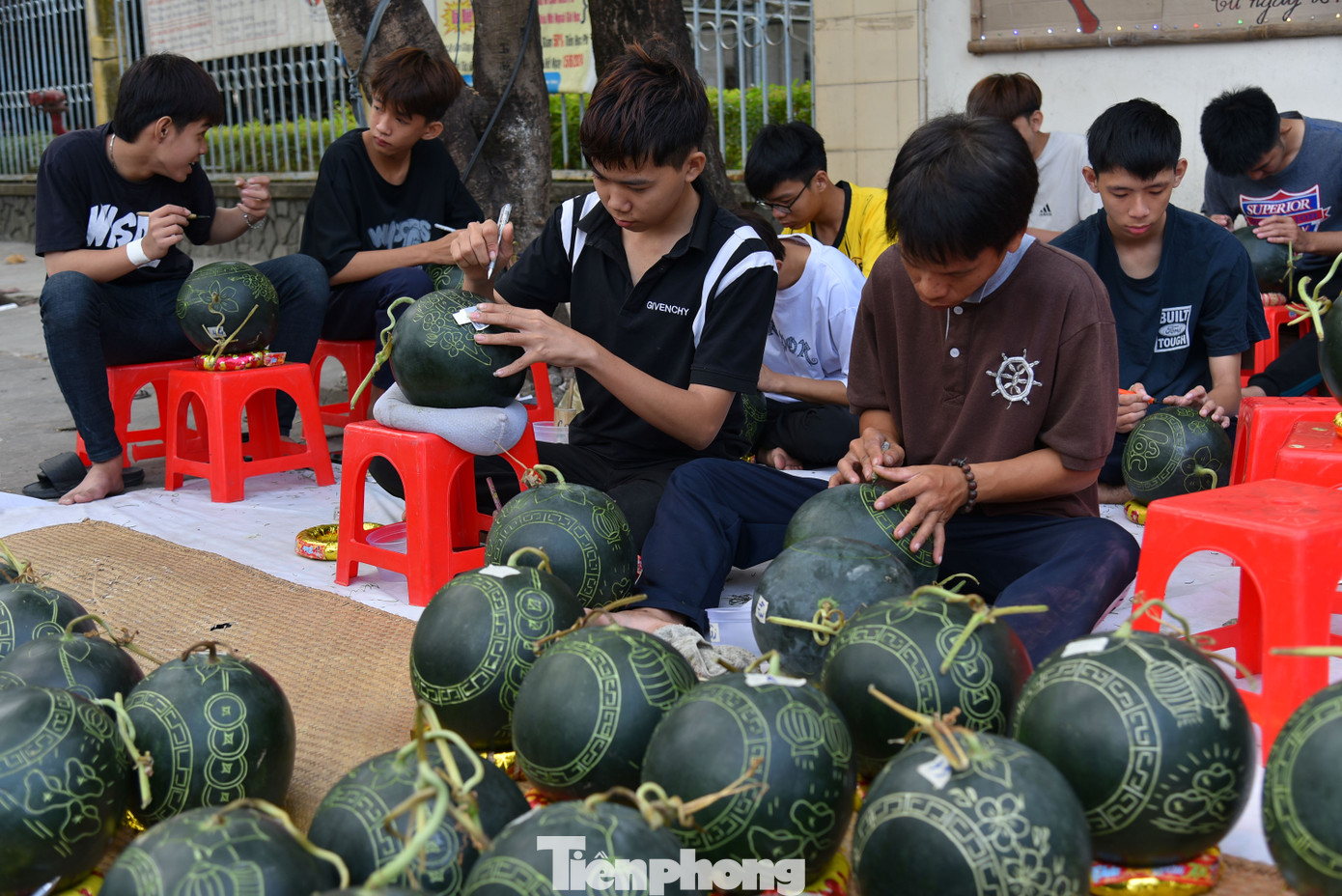 Năm nay, trường tổ chức khắc trên 700 trái dưa, giá 30.000 đồng/kg, nhà vườn cung cấp sẵn, còn tiền công khắc mỗi trái 50.000 đồng.