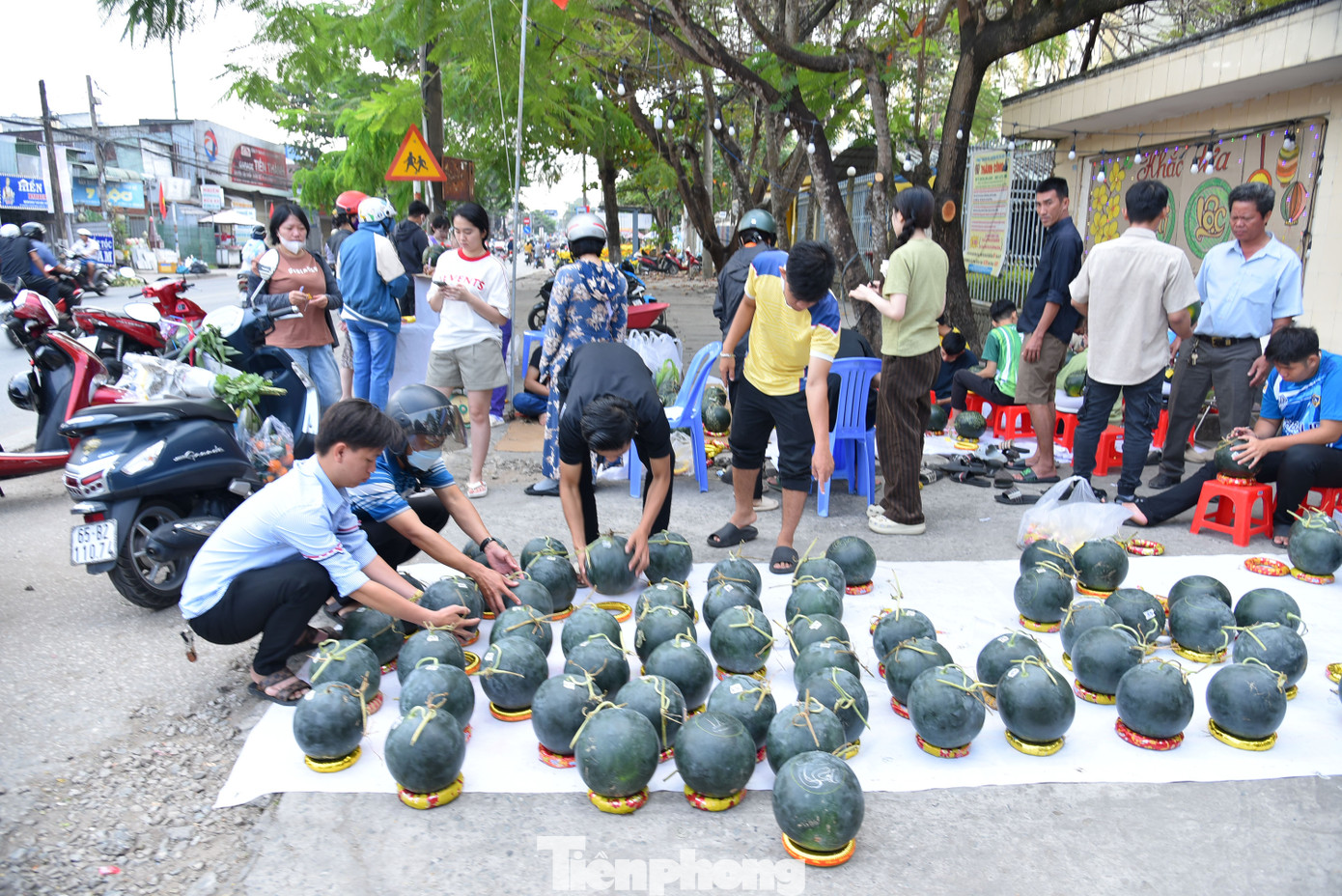 | Dưa hấu khắc chữ thư pháp. Ảnh: Hòa Hội |