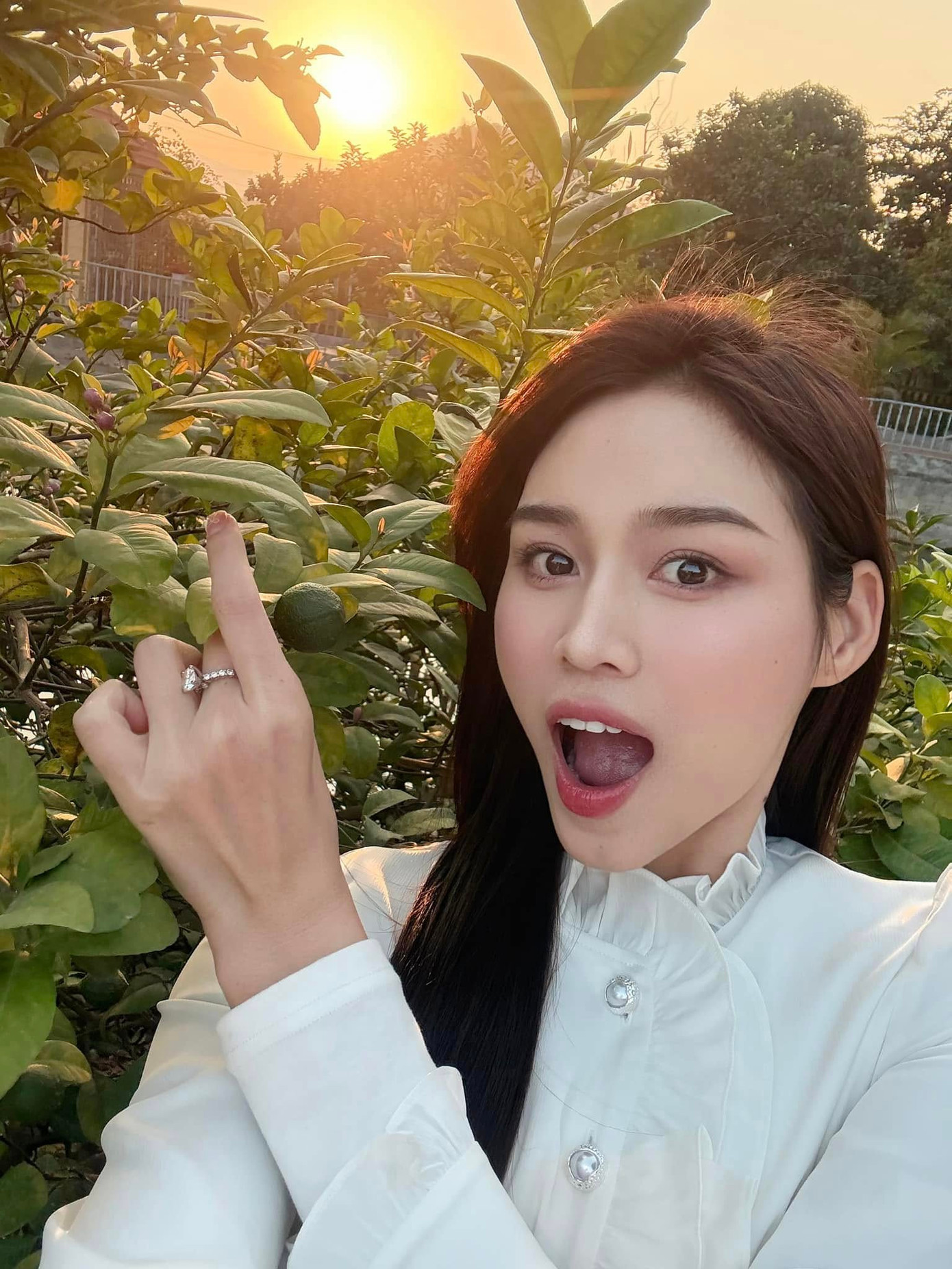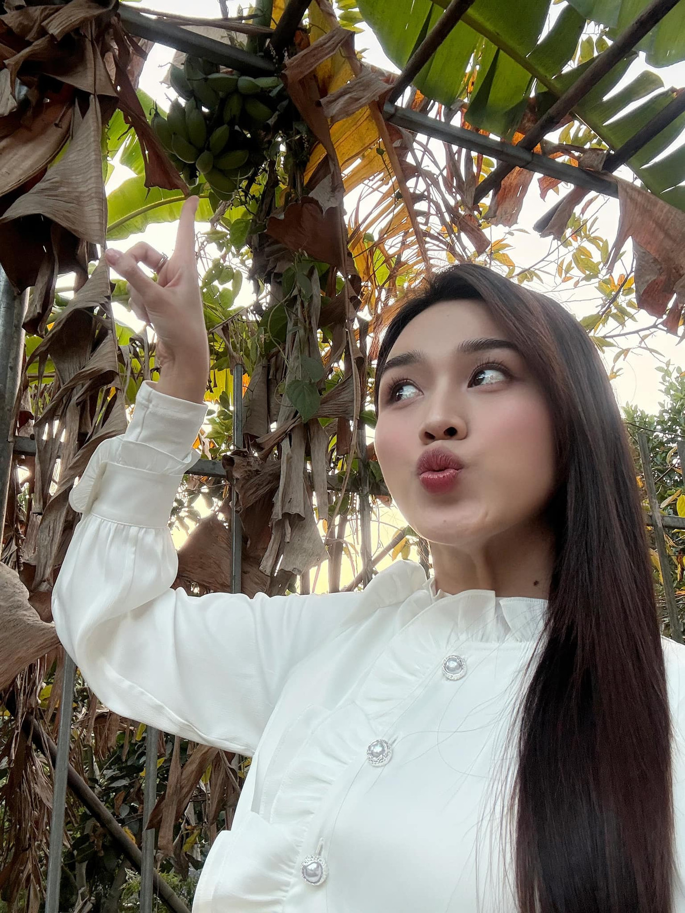 Hoa hậu Đỗ Thị Hà cũng không cần đi đâu xa mà chụp ảnh selfie ngay tại mảnh vườn nhỏ ở nhà mình. Từ cây chanh, cây ổi mà mẹ nàng hậu trồng đều trở thành nơi sống ảo đẹp mắt.
