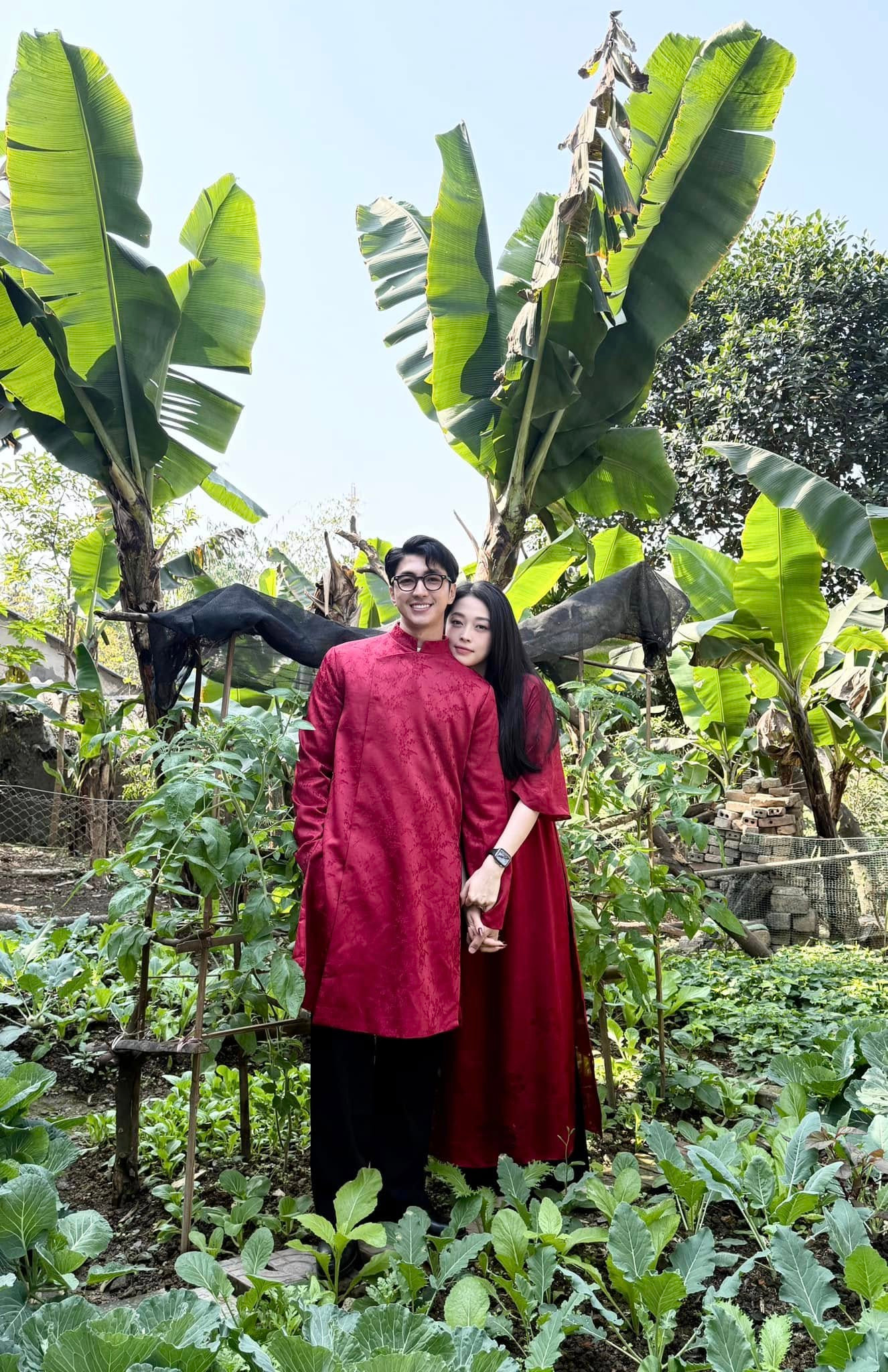 Á hậu Phương Nga về quê chồng ở Phú Thọ để đón Tết cùng Bình An và hai vợ chồng diện áo dài đỏ rực rỡ để thực hiện bộ ảnh ở ngay vườn nhà. Khoảnh khắc Phương Nga, Bình An tạo dáng ở chuồng gà hay vườn rau khiến cư dân mạng phì cười vì quá hài hước.