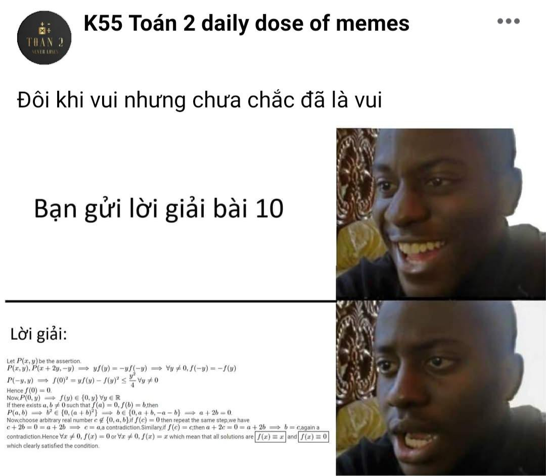 Đúng như tên gọi, K55 Toán 2 daily dose of memes là từ điển meme với nguồn nội dung dồi dào là biểu cảm của học sinh mỗi ngày đến trường. Không chỉ teen, các thầy cô cũng trở thành nguồn cảm hứng sáng tạo, đặc biệt là thầy giáo chủ nhiệm lớp. Những khoảnh khắc hài hước nhất được lưu lại ngay trên fanpage, tìm kiếm dễ dàng chỉ với thao tác mở album ảnh.