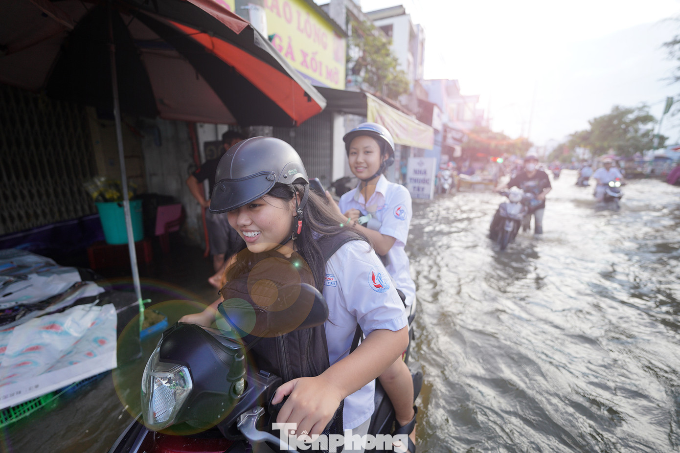 Nhiều em học sinh được phụ huynh đón trễ chịu chung cảnh ngập nước, chết máy, đẩy bộ. Trong khi đó, chiều 18/10, Trường THCS Nguyễn Hiền (quận 7, TPHCM) đã ra thông báo trường điều chỉnh giờ ra về lúc 15h50 thay vì 16h30 để tạo thuận lợi cho học sinh, phụ huynh.