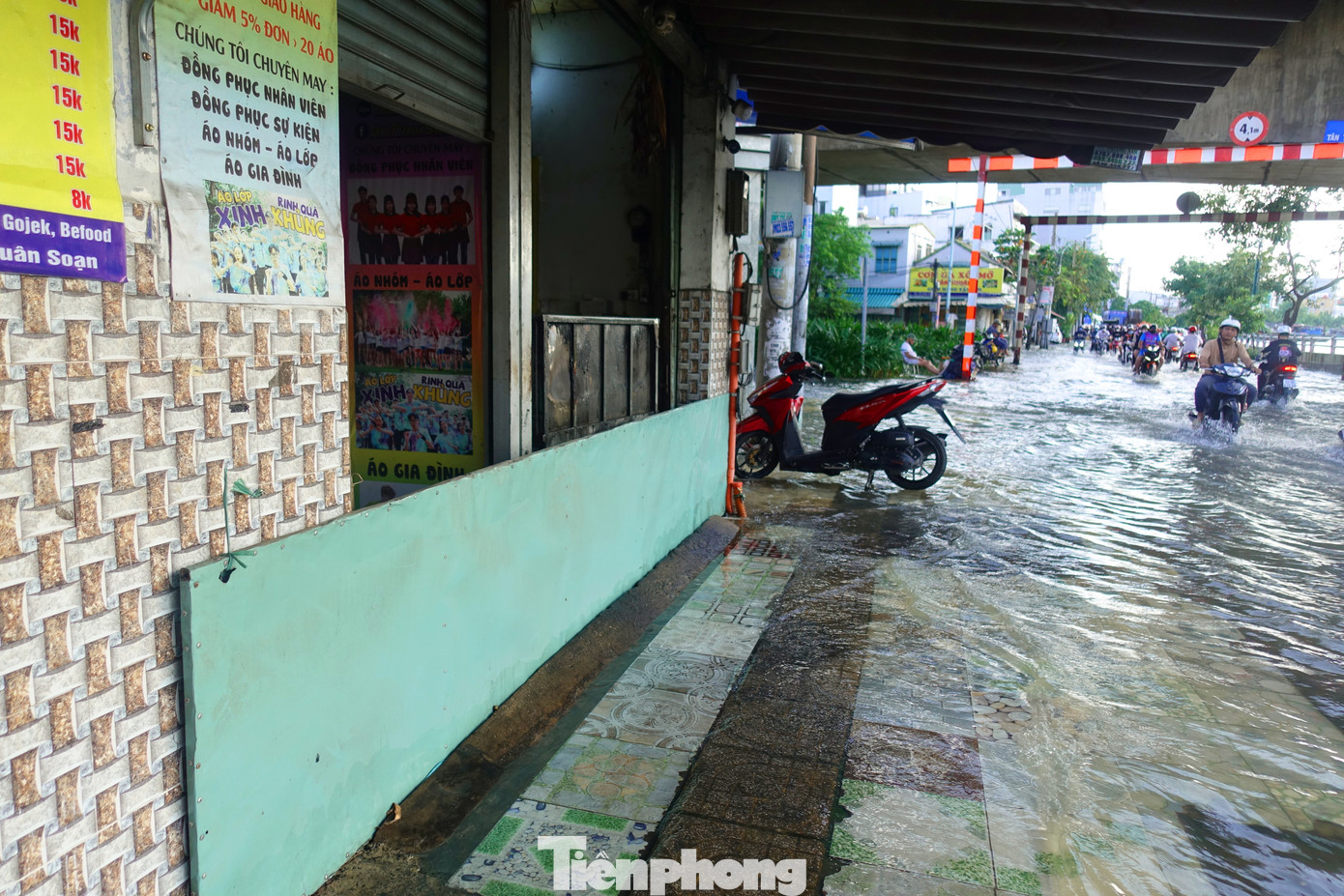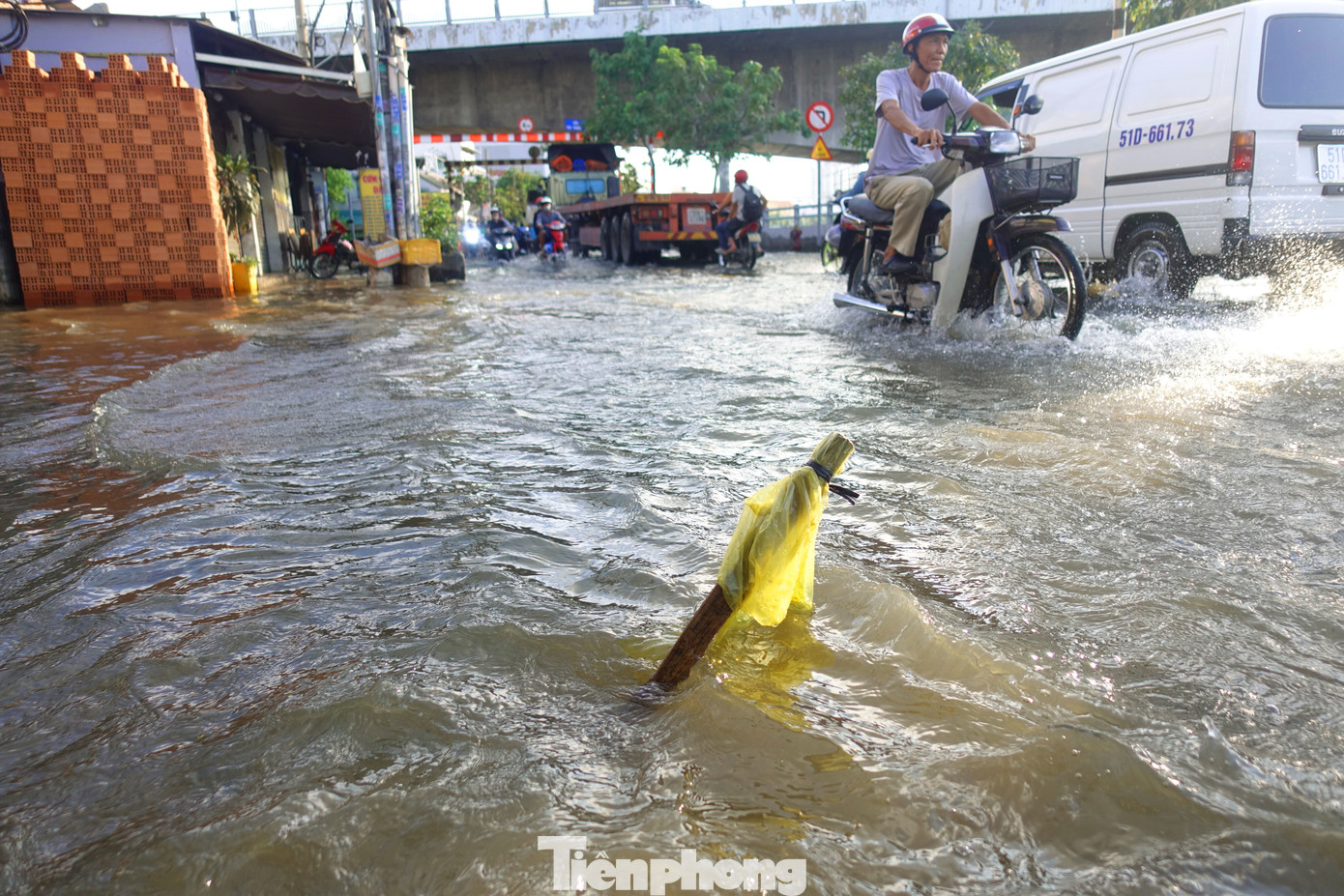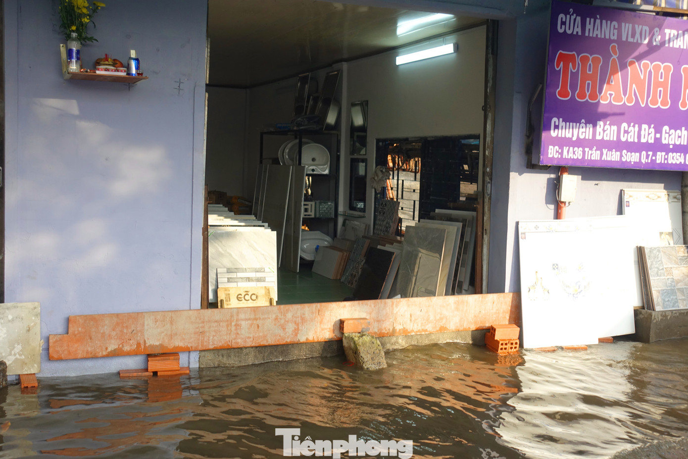 | "Nền đất ở khu vực này khá thấp, mỗi năm từ tháng 8 đến tháng 10, tháng 11 âm lịch hầu như đều bị ngập bởi các kỳ triều cường đầu và giữa tháng. Ngập nước khiến việc kinh doanh bị ảnh hưởng rất nhiều"- ông Nguyễn Văn Bá (ngụ đường Trần Xuân Soạn, quận 7) cho biết. |