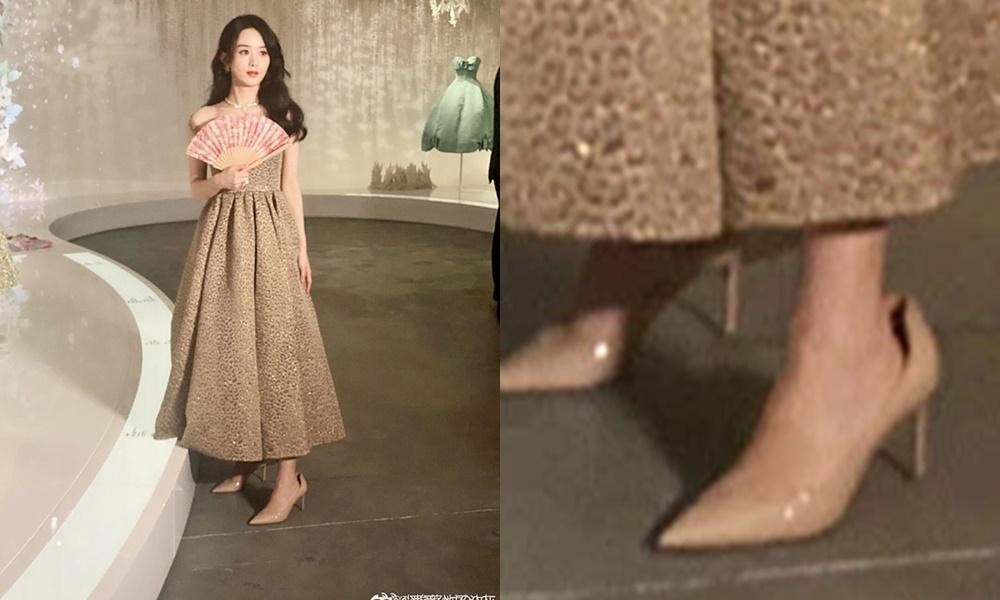 Đây không phải lần đầu tiên Triệu Lệ Dĩnh chọn giày rộng hơn một size khi dự sự kiện. Nữ diễn viên thường xuyên để lộ khoảng trống đến 1 cm giữa gót chân và giày.