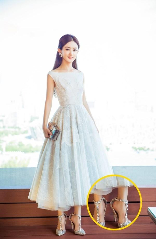Nhưng hóa ra Triệu Lệ Dĩnh chẳng hề thiếu giày đúng size mà cô chủ đích đi giày rộng. Không riêng Triệu Lệ Dĩnh mà rất nhiều nữ nghệ sĩ khác cũng thường xuyên đi giày cao gót lớn hơn một vài cỡ.