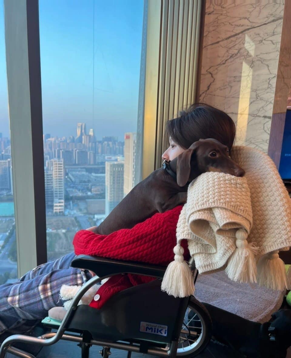Theo video, nữ diễn viên vẫn phải nhờ đến xe lăn và người thân, bạn bè hỗ trợ di chuyển. Cô đã tập luyện phục hồi chức năng để sớm đi lại được bình thường. Việc cầm nắm với Triệu Lộ Tư cũng khá khó khăn.
