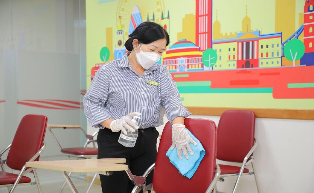Công tác vệ sinh khử khuẩn được tiến hành nghiêm ngặt trước và sau mỗi giờ học. Trước đó, trung tâm cũng đã khẩn trương lên phương án, sẵn sàng mọi điều kiện để đảm bảo một môi trường an toàn và an tâm cho tất cả phụ huynh, học viên đến tư vấn và học tập.